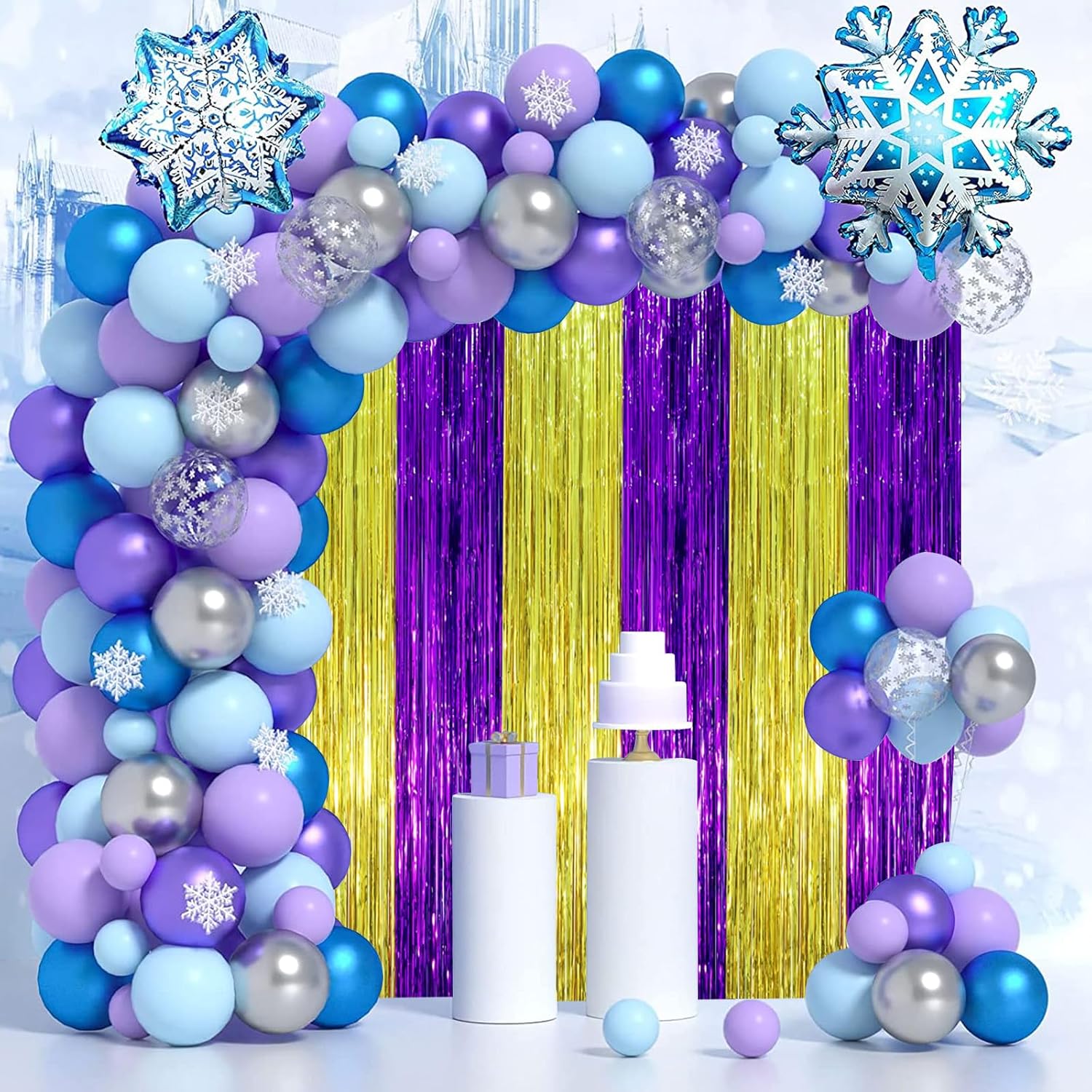 - Premium Material: This purple gold backdrop decoration is made of tinsel, non-toxic, odorless, and non-fading. Unfold it and then enjoy your glittering party