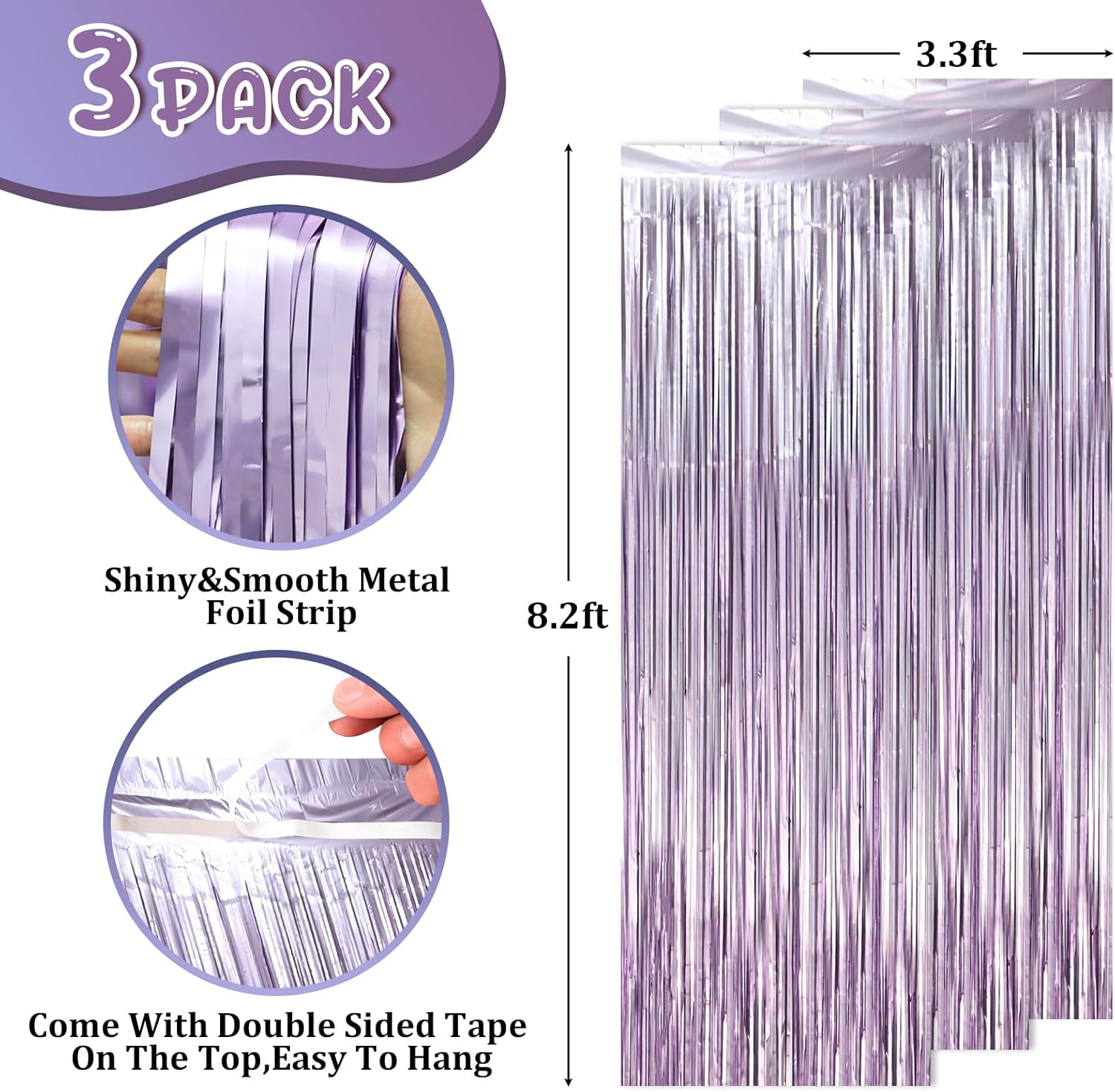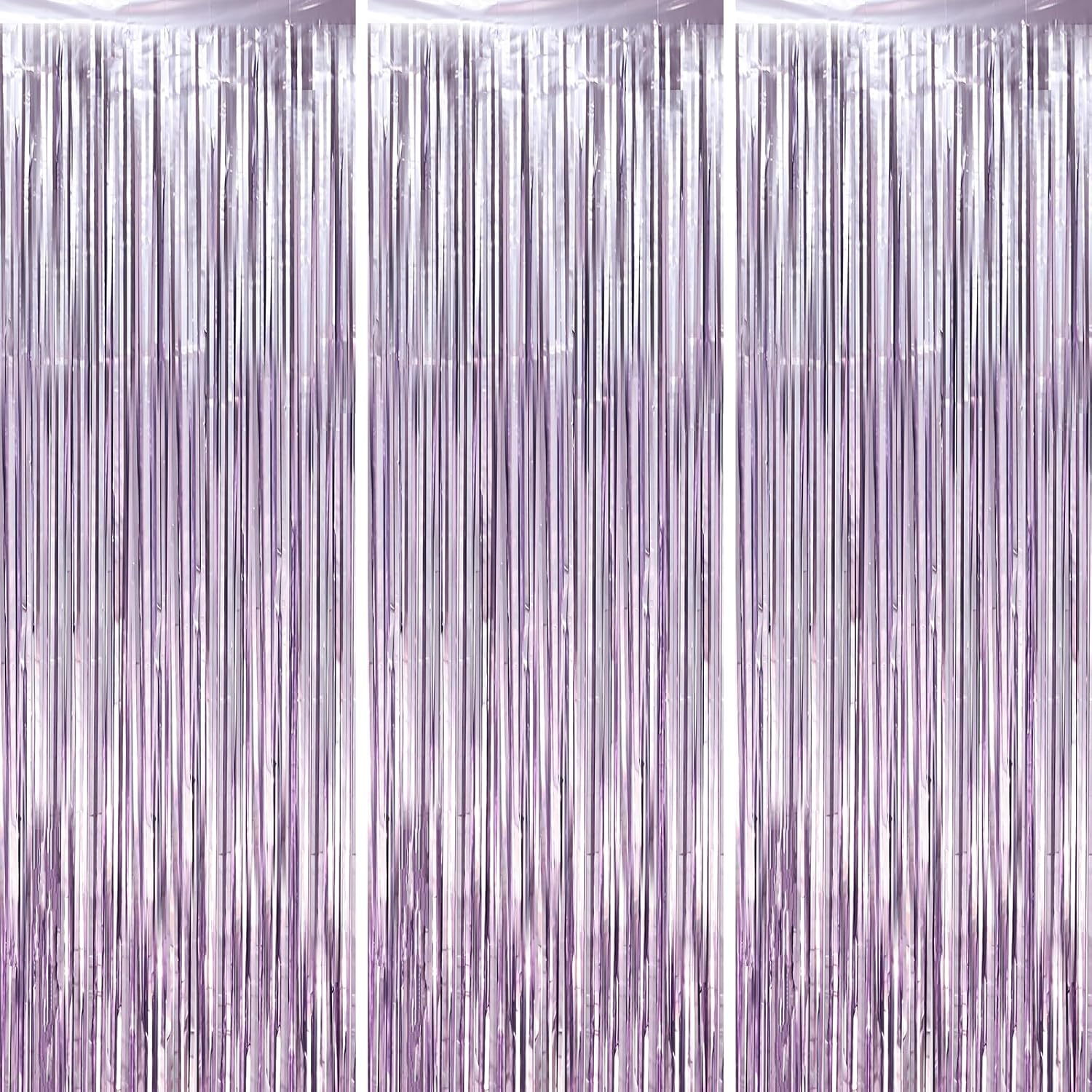 - Package Included: 3 packs of light purple foil fringe curtains, the size of the foil curtain is 3.3*8.2ft. It's long enough to fit any occasion