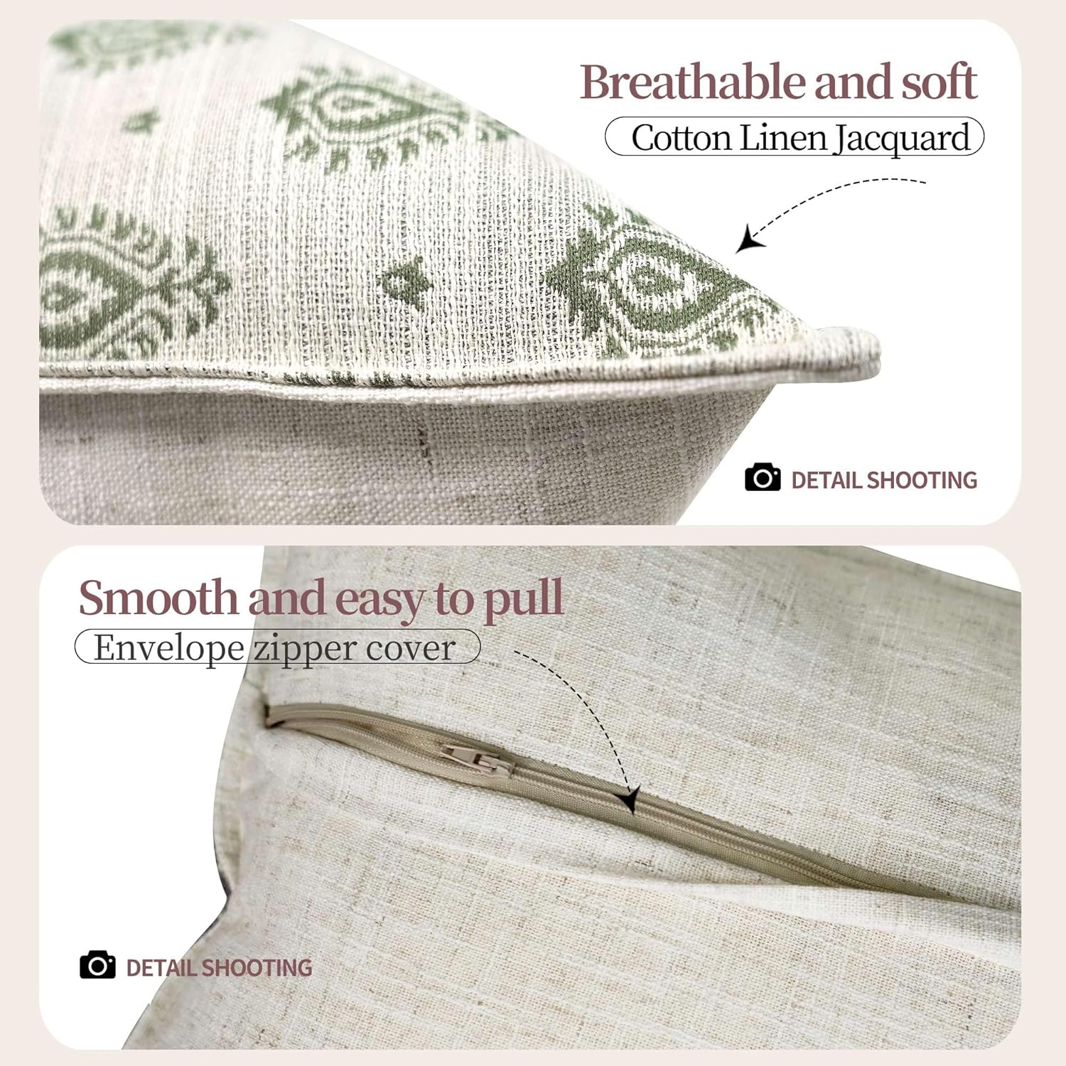 Floral Pillow Covers 18x18 Set of 2 Decorative Throw Pillow Covers Neutral Floral Paisley Farmhouse Pillow Covers for Sofa Couch Bed