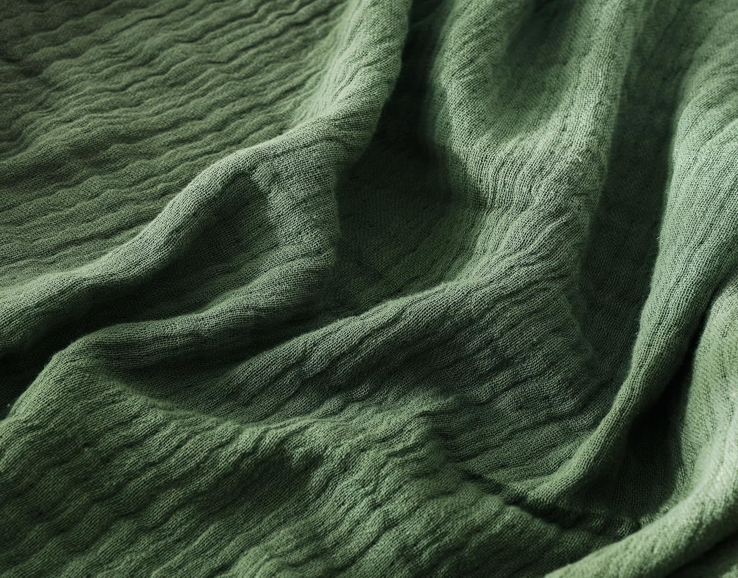 100% Cotton Muslin Throw Blanket for Bed, Couch, Small, Decorative, Soft, Pre-Washed, Breathable and Lightweight Gauze Blanket with Tassels, Suitable for All Seasons, Olive Green, 50"x60"