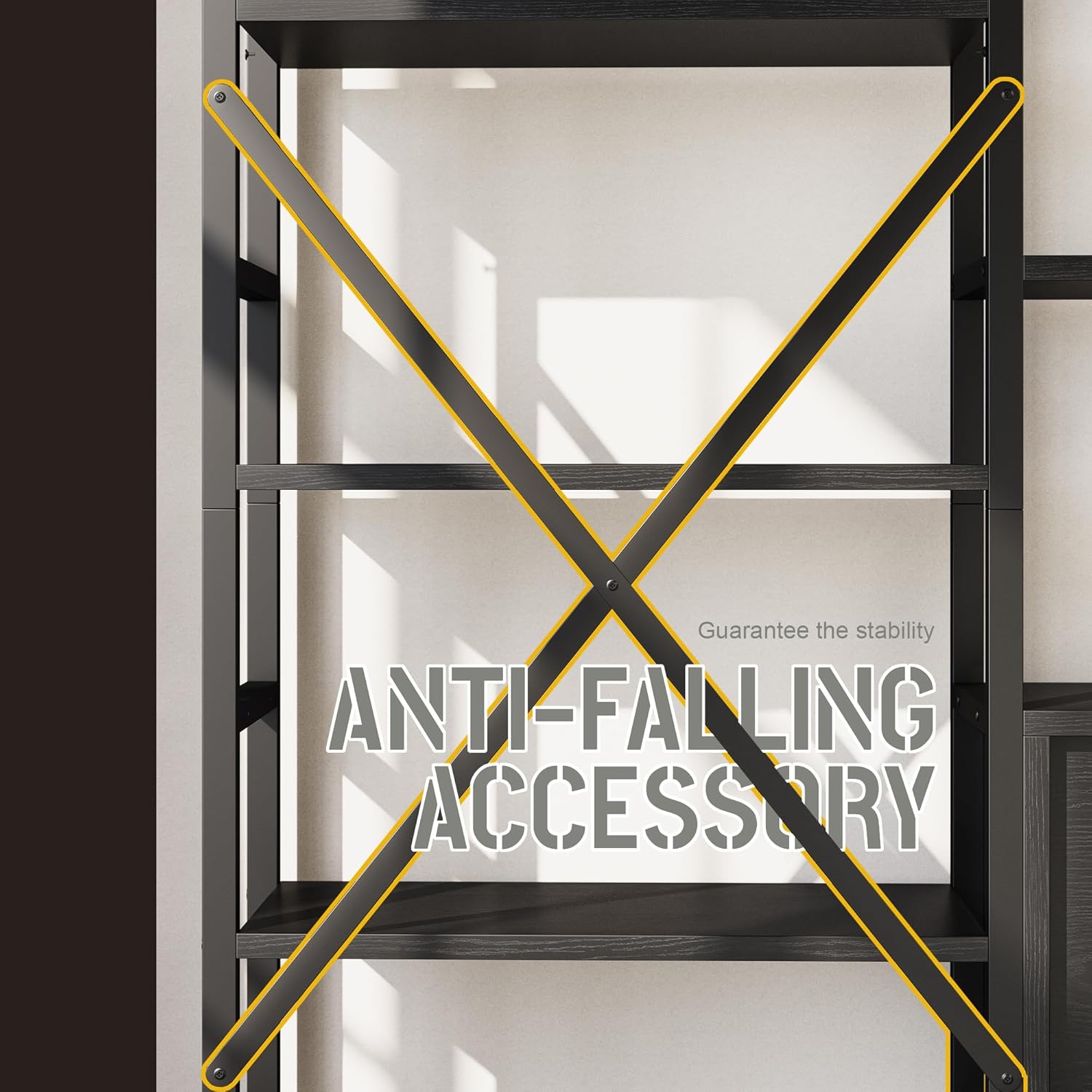 - 【Multi-purpose Bookshelf】Bookshelf with storage can be used as display shelf, office shelves, plant shelf, storage shelves, and more. They are perfect for decorating your living room, bedroom, home office, kitchen, and entryway. The industrial color of the display shelf complements your existing furniture in the living room, bedroom, study, or office space.