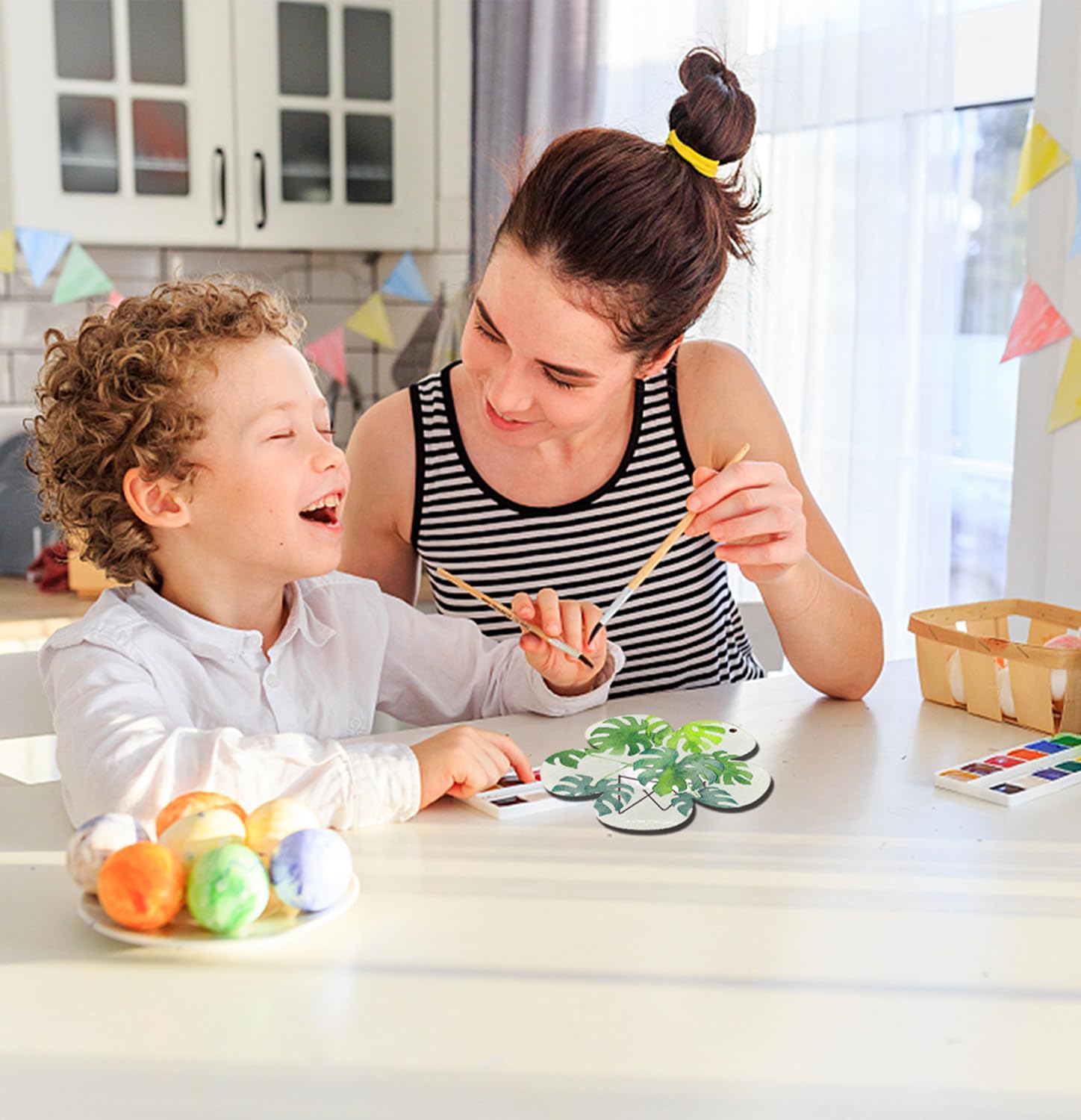 - ✿【EASY TO USE】: Easy to write or paint. Every wooden flower slice features a small hole that can be threaded with string, ribbon, or lace for you to hang easily, creating a vintage and rustic look for your home decor, and spring ornaments. Perfect Ornaments for St.patrick's/Spring crafts, just paint and decorate them to make a unique ornament you can use year after year