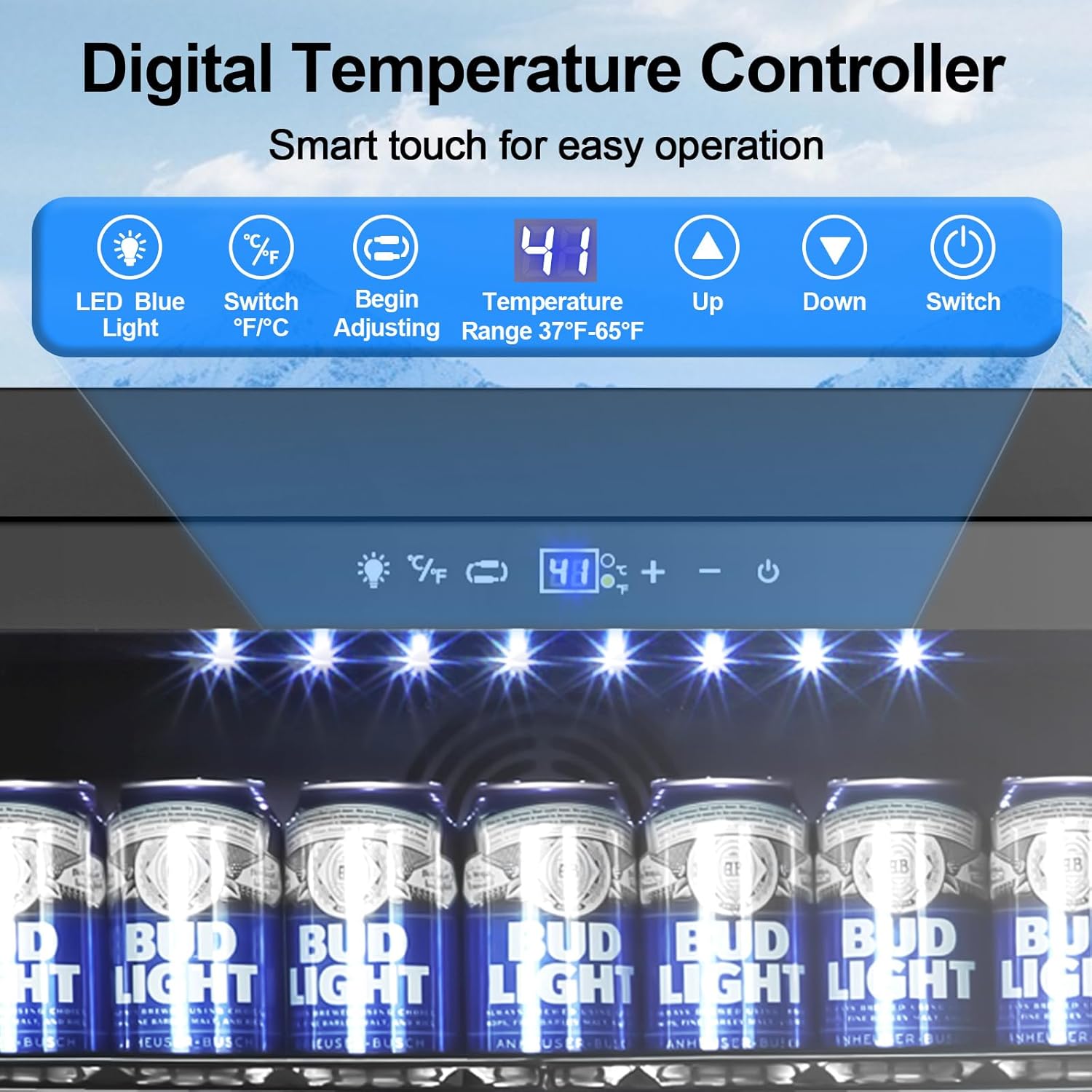 - DUAL-LAYER TEMPERED GLASS DOOR: Featuring a dual-layer tempered glass door with a seamless design, this mini drink fridge not only enhances its aesthetic appeal but also effectively insulates against external heat. The lockable door prevents accidental openings by children or pets. Additionally, it comes with blue LED lighting. The beverage refrigerator with glass door is equipped with a sensitive temperature sensor chip with memory function, meaning it will automatically return to the previous set temperature after a power outage and recovery.