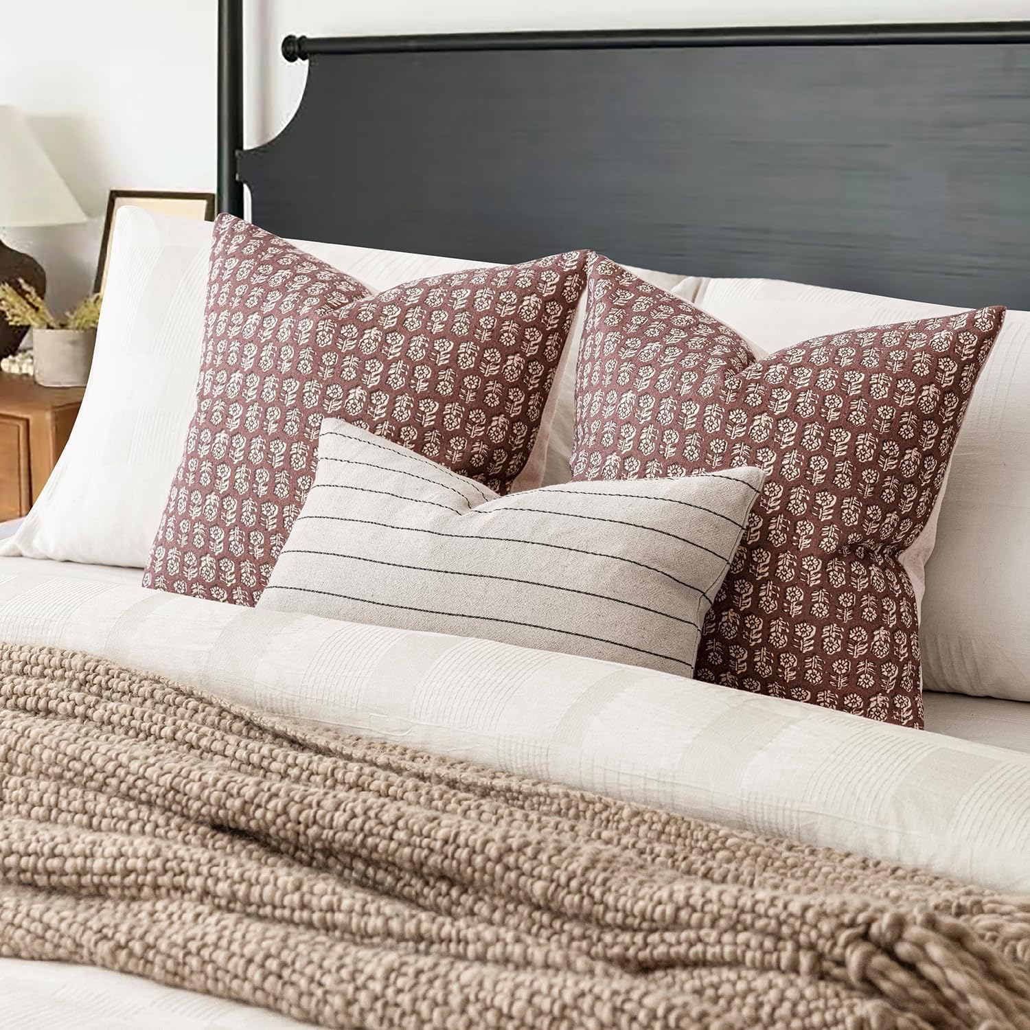 Foindtower Set of 2 Decorative Vintage Floral Print Throw Pillow Covers Neutral Modern Farmhouse Cushion Covers Boho Home Decor for Sofa Chair Couch Bedroom Living Room Outdoor,18×18 Inch,Wine Red