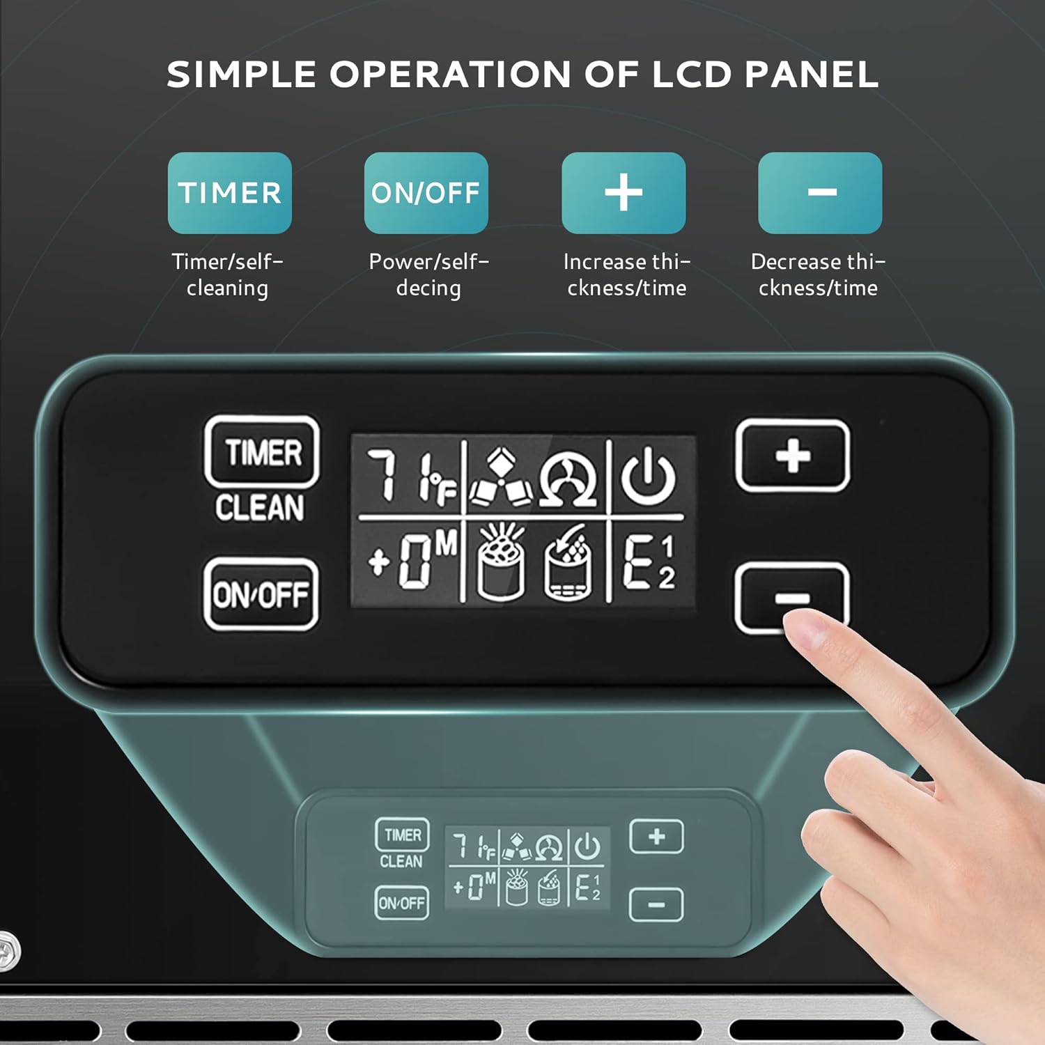 - Smart LCD Control Panel & Customizable Ice Thickness: The multifunctional control panel displays the ambient temperature and allows you to adjust the ice cube size by changing the ice-making time. The 24-hour timer function lets you set the machine to start or stop running at your convenience.