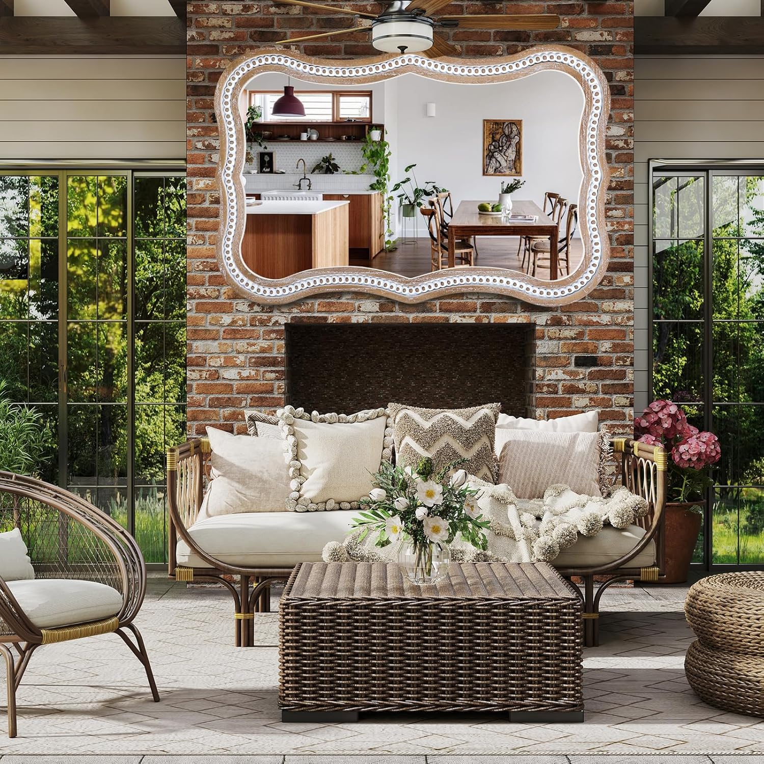- 4. Perfect Size: At 35" x 24", this decorative wall mirror is large enough to make a statement while blending seamlessly with your home decor, whether as a boho mirror for wall or a mirror for bathroom wall