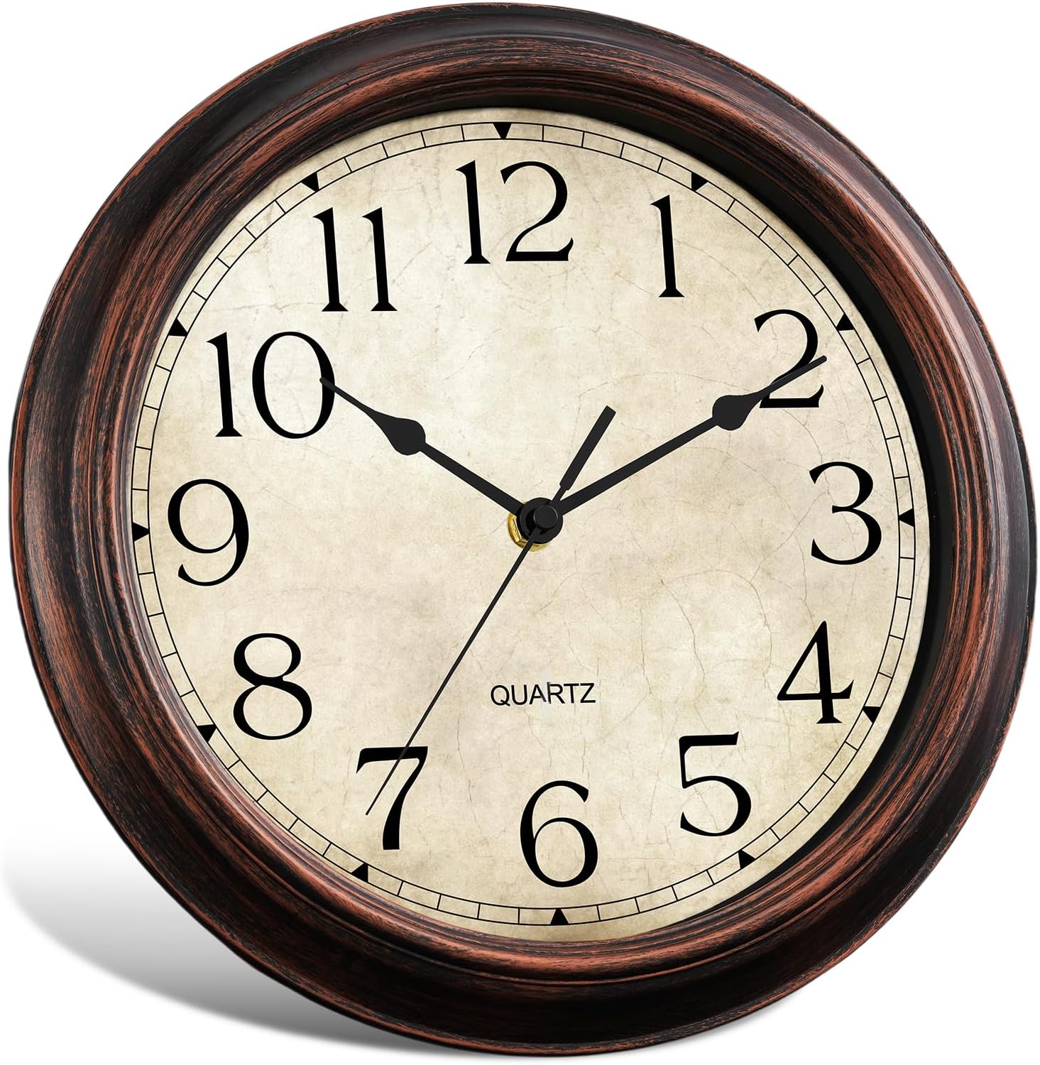 12 Inch Wall Clocks Battery Operated Silent Non-Ticking Analog Wall Clock Vintage Retro Rustic Style Decorative for Living Room Kitchen Home Office(Bronze)