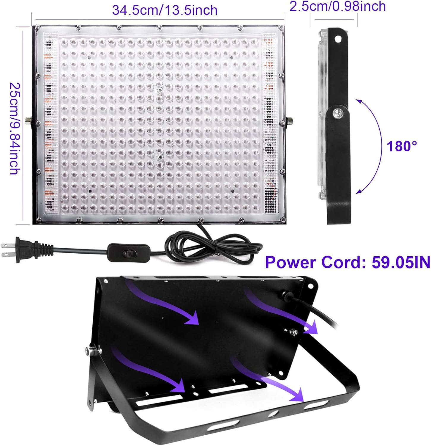 300W Black Lights, Blacklight Flood Light with Plug and Switch,for Glow Party, Black Light Party, Halloween, Body Paint, Neon Glow, Fluorescent Poster, Stage Lighting
