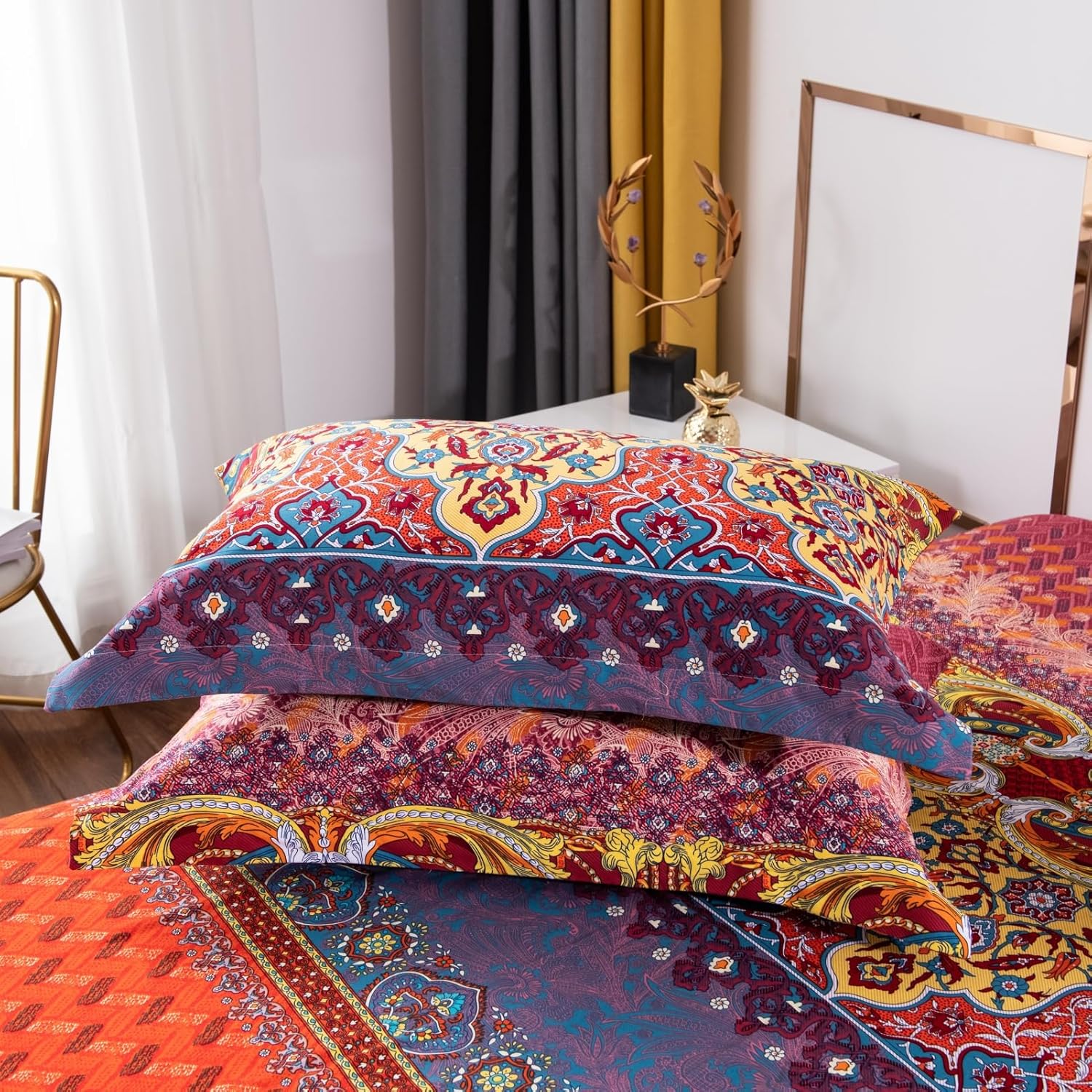 ABREEZE Bohemian Duvet Cover Set Colorful Orange Boho Retro Bedding Set Damask Paisley Cotton Duvet Cover Tribal Reversible Bedding Exotic Style Comforter Cover 3-Piece Twin
