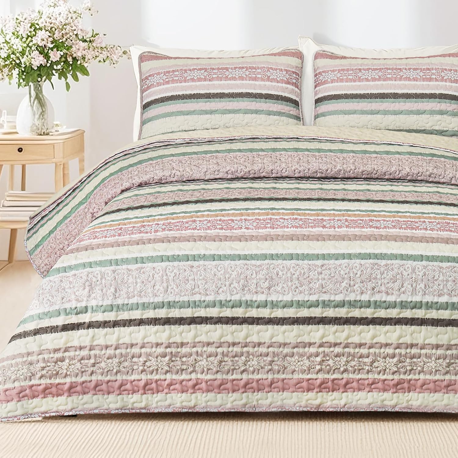 - Design: Pastel striped patterns are carefully printed on this quilt bedding set. Thanks to the high-tech digital print technology, this bed cover could keep its vibrant colors and patterns from fading after washing