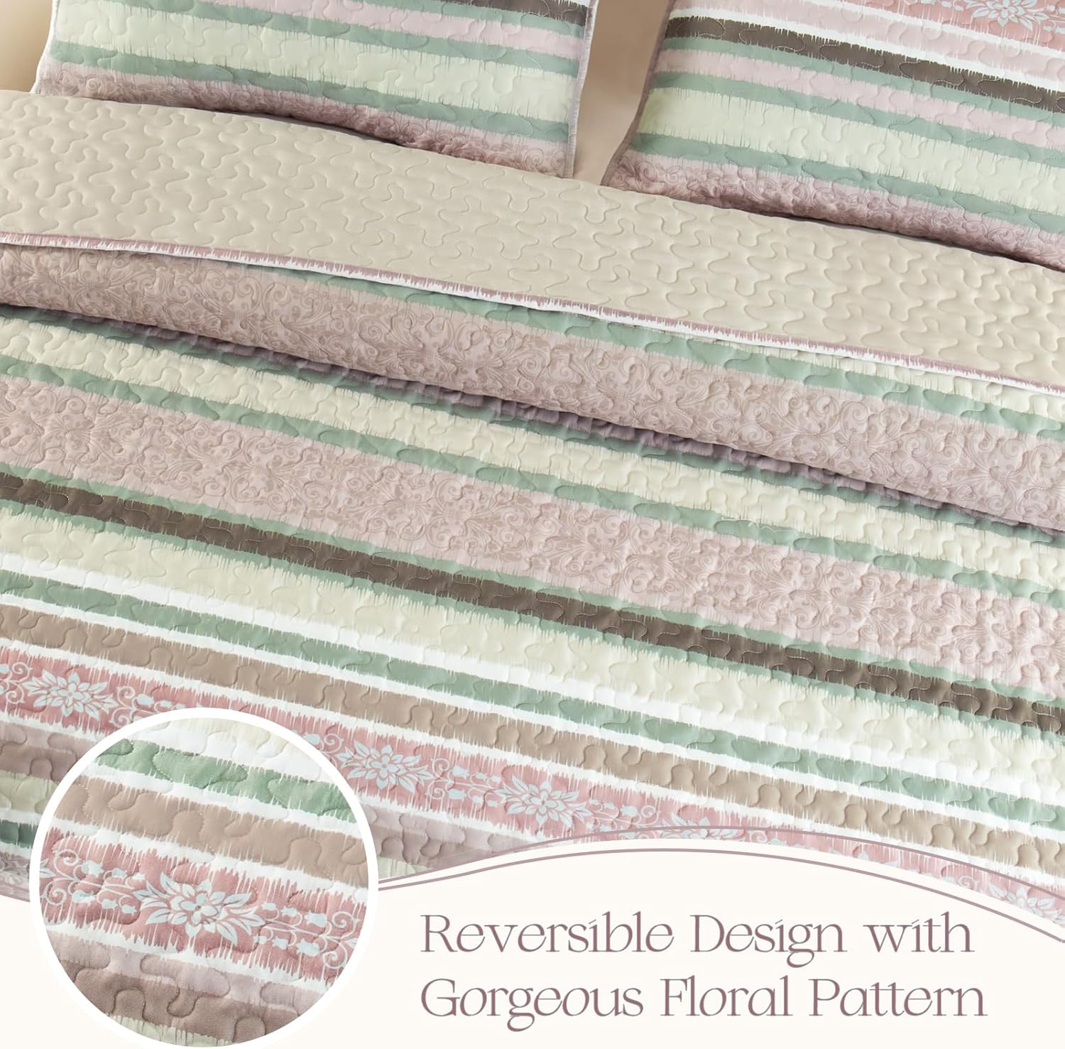 - Design: Pastel striped patterns are carefully printed on this quilt bedding set. Thanks to the high-tech digital print technology, this bed cover could keep its vibrant colors and patterns from fading after washing