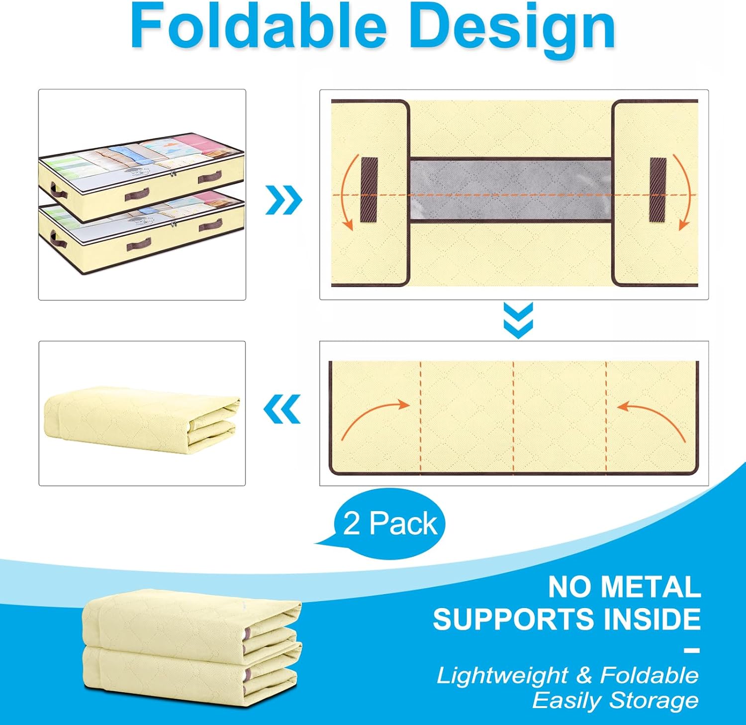 90L Under Bed Storage Containers, Underbed Toy Organizers and Clothing Storage Bags, Closet Storage Bins with Clear Window for Organizing Blanket Comforter Bedding Clothes Bedroom Dorm, 2 Pack Beige