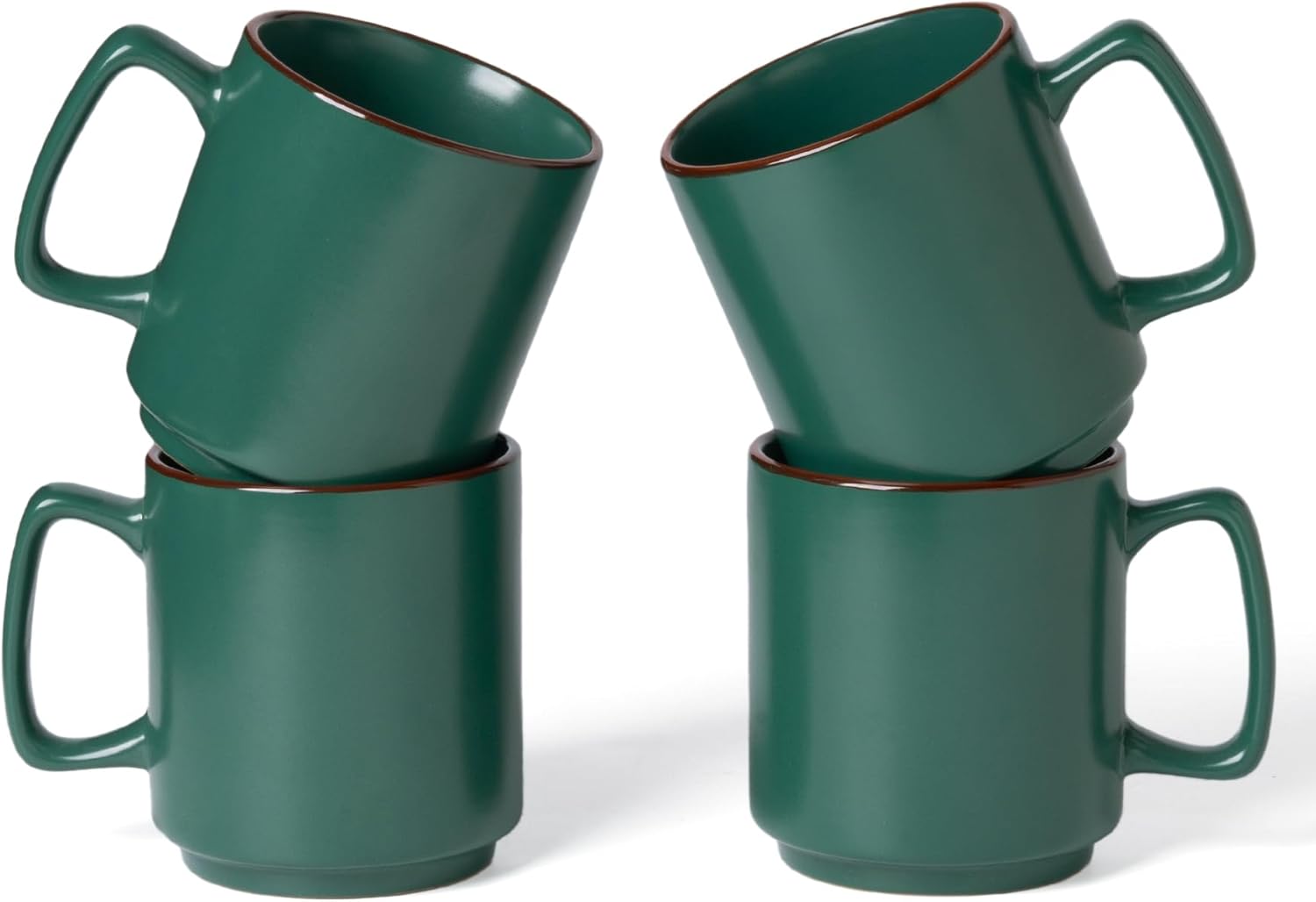 famiware Coffee Mugs Set of 4, Nebula 14oz Coffee Mugs, Ceramic Cup Set with Handle for Latte, Tea, Milk, Cappuccino, Cocoa, Dark Green