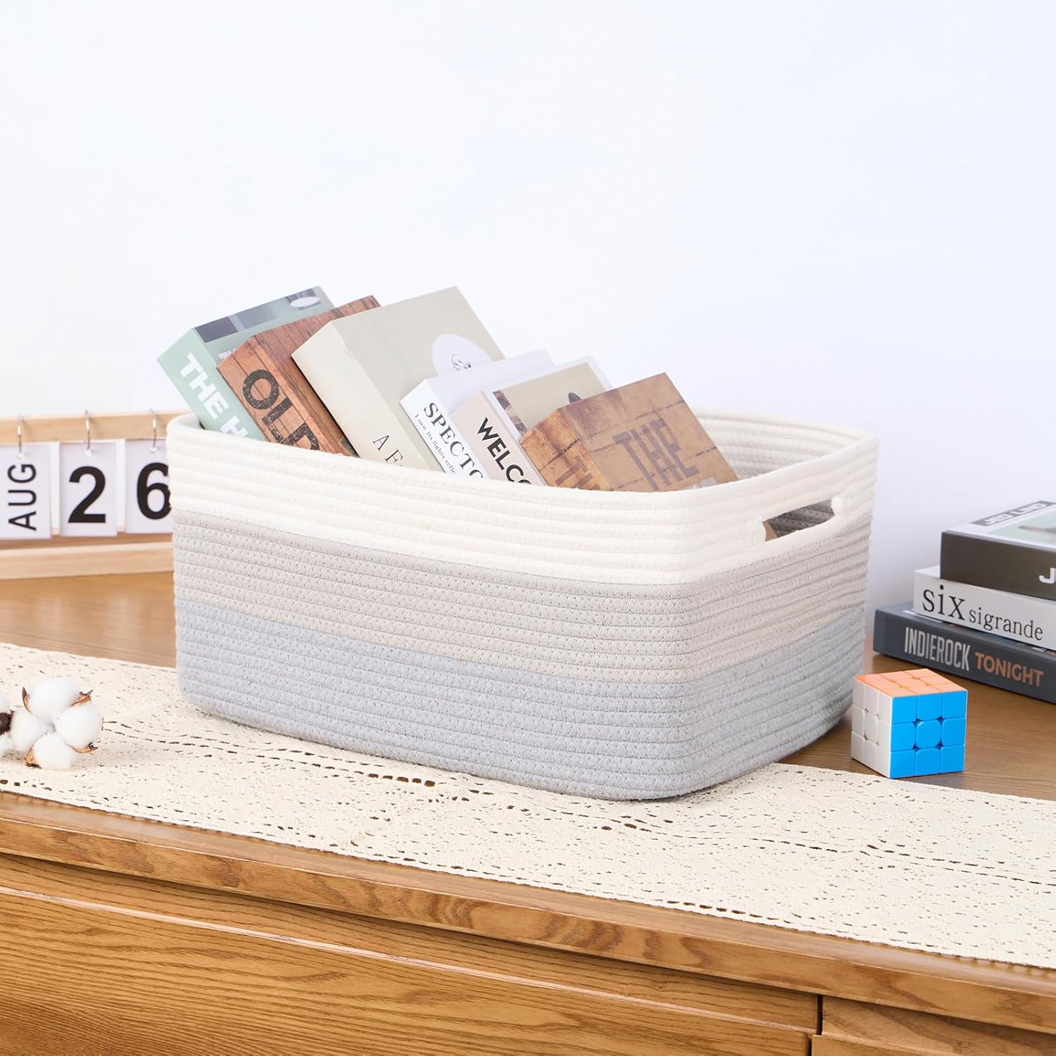- [ Stylish Design ]: With a modern minimalist design, our woven rope baskets are a chic alternative to traditional rattan. They’re perfect for closets, changing table organizer, and cube shelves, adding warmth and texture to any room while tackling home clutter