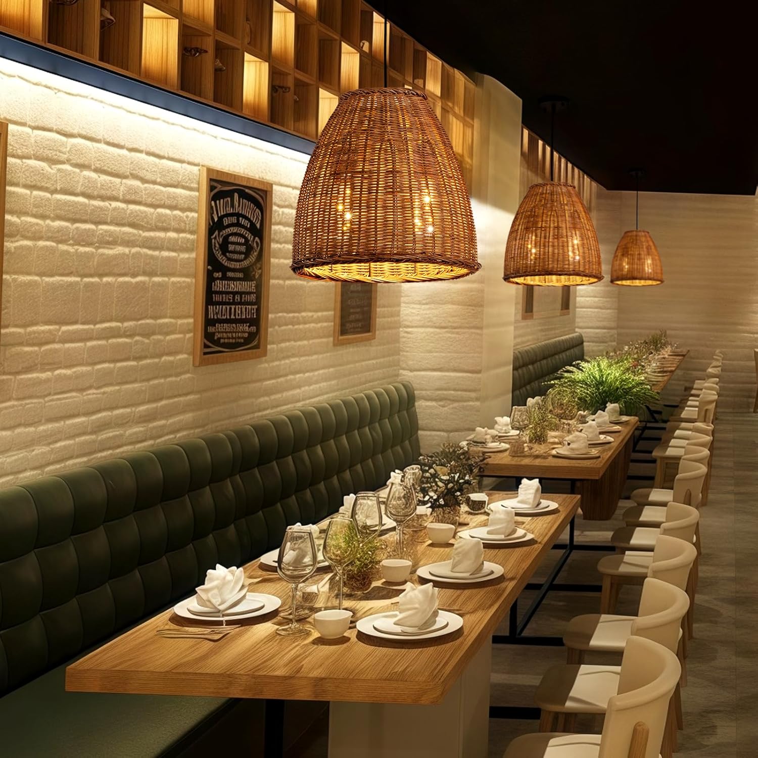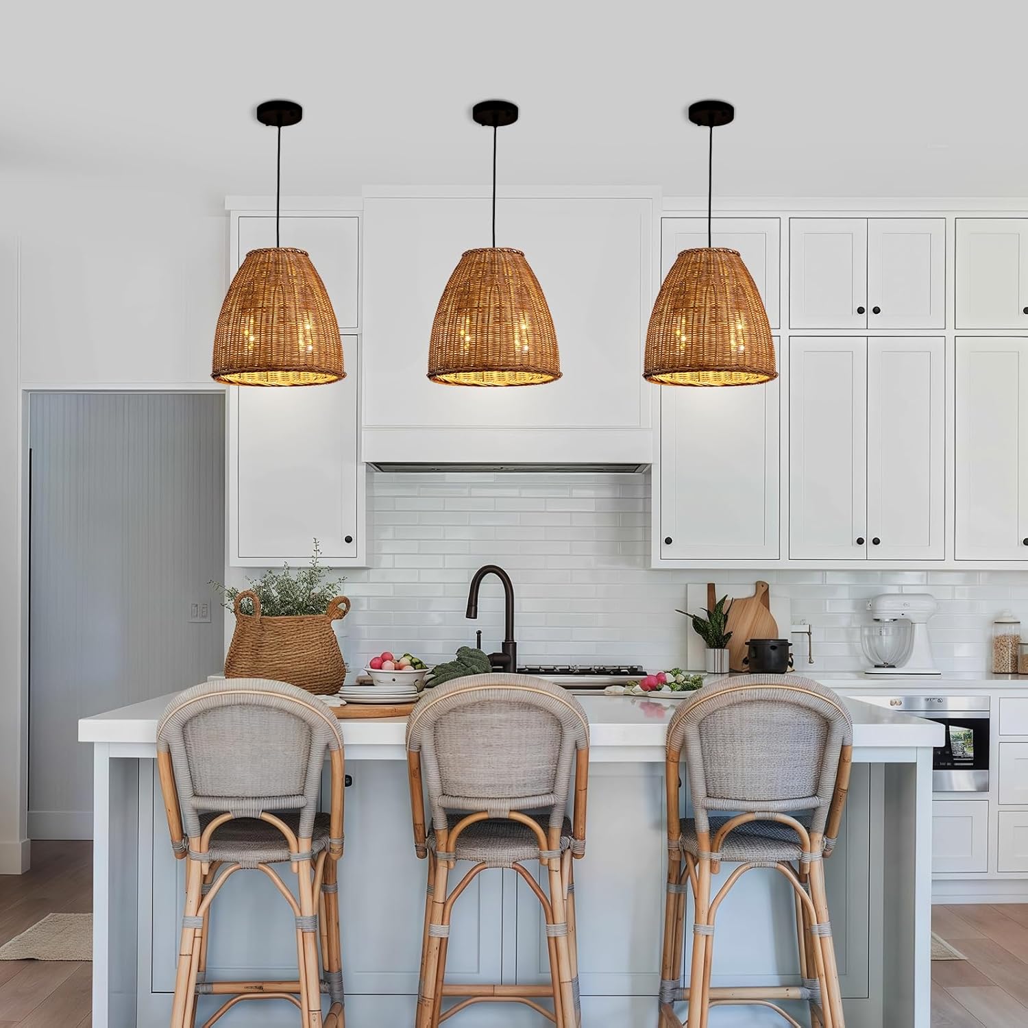 - 【Hand-Woven Rattan Chandelier Natural Material】Rattan craft is selected from the trees we grow , which undergoes various processing procedures. This Rattan craft is heat resistant, fade resistant, safe and healthy
