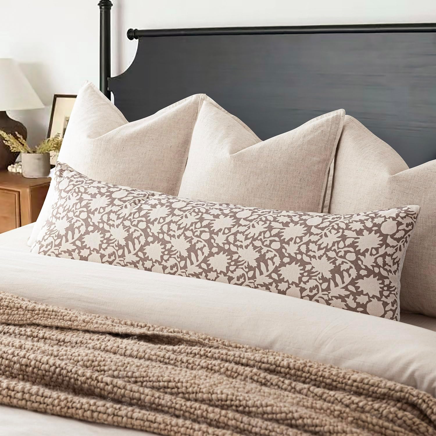 Foindtower Set of 2 Decorative Floral Long Body Lumbar Throw Pillow Covers Neutral Farmhouse Cushion Covers Boho Vintage Pillowcase For Couch Sofa Bedroom Living Room Home Decor Outdoor,14×36 Inch,Tan