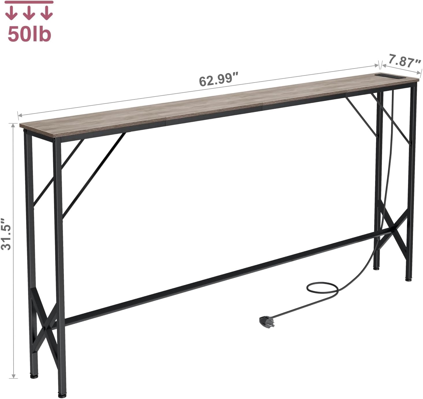 63'' Console Table, Skinny Entryway Table with Fast-Charging Station, Narrow Long Sofa Table, Behind Slim Couch Table for Entrance, Hallway, Living Room Decor ST-GY160-1