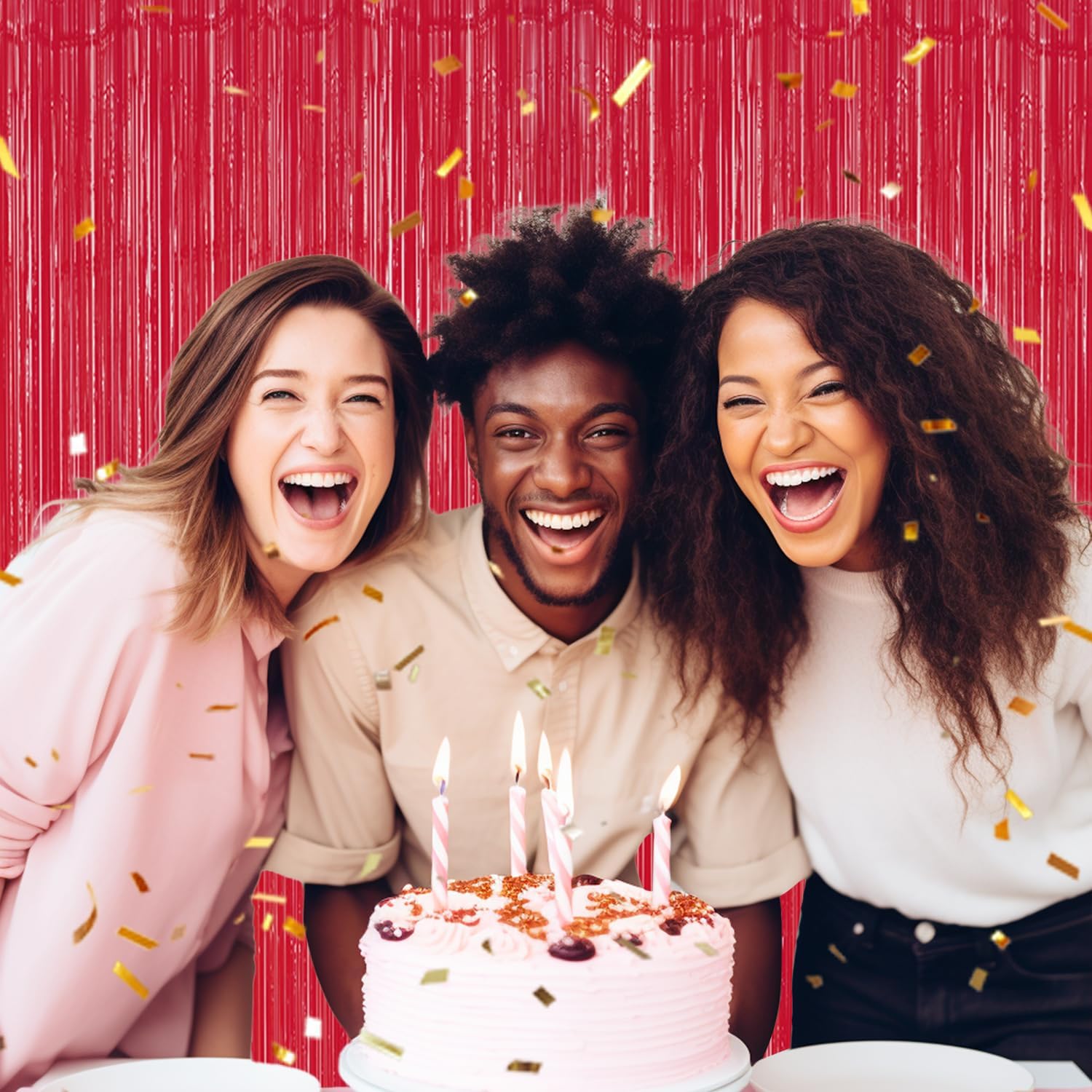 3 Pack Foil Fringe Backdrop - Pastel Red Shiny Tinsel Curtains for Party Decoration/Photo Booth Props - 3.3x8.2 FT Metallic Foil Backdrop for Birthday, Wedding, Graduation, Christmas.
