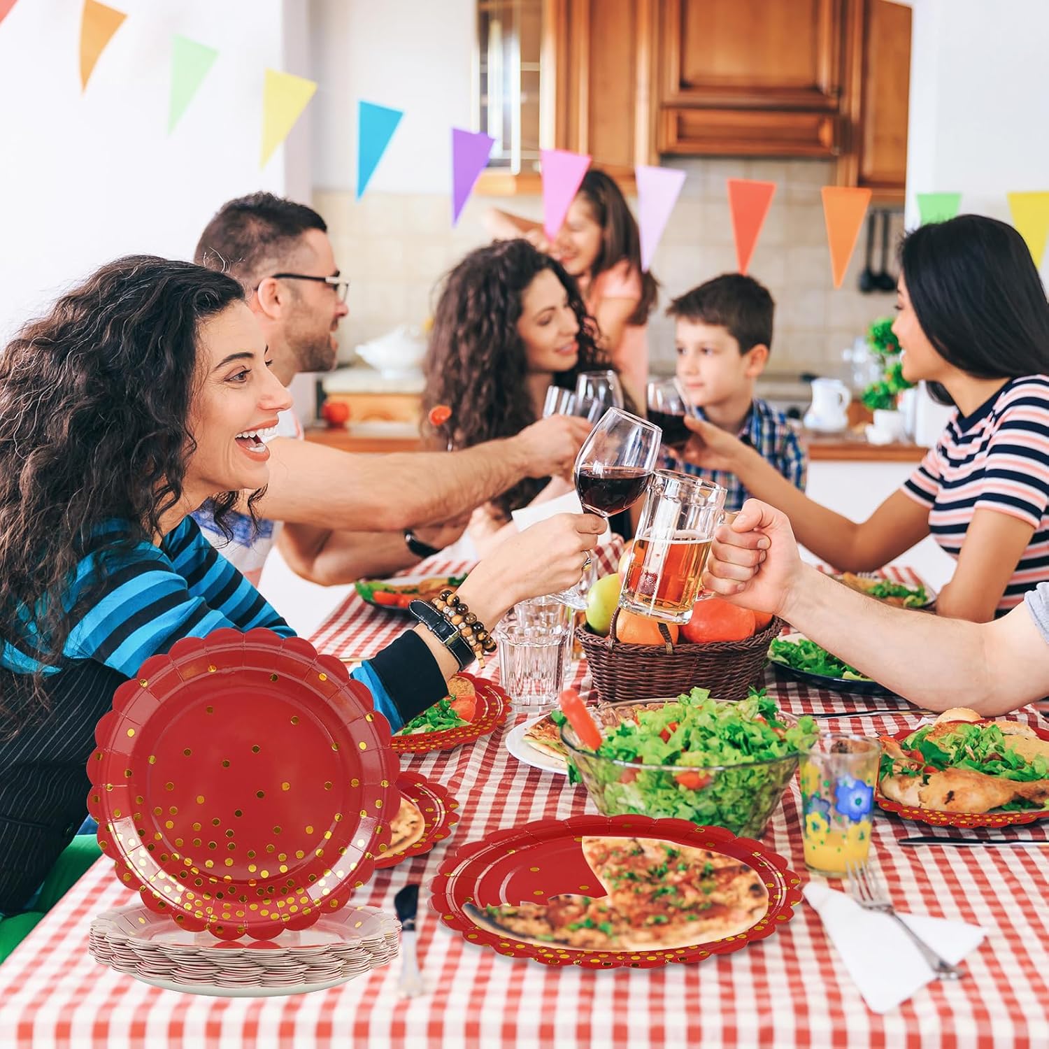 - 【FOR EVERY EVENT】: Elegant red plates for party is great for everyday and party use, like cocktail evenings, BBQ parties, family gatherings, bar decorations, picnics, elegant bridal showers, afternoon tea parties, birthdays, holiday celebrations, Christmas, New Years, Graduation Parties, and other occasions and events.