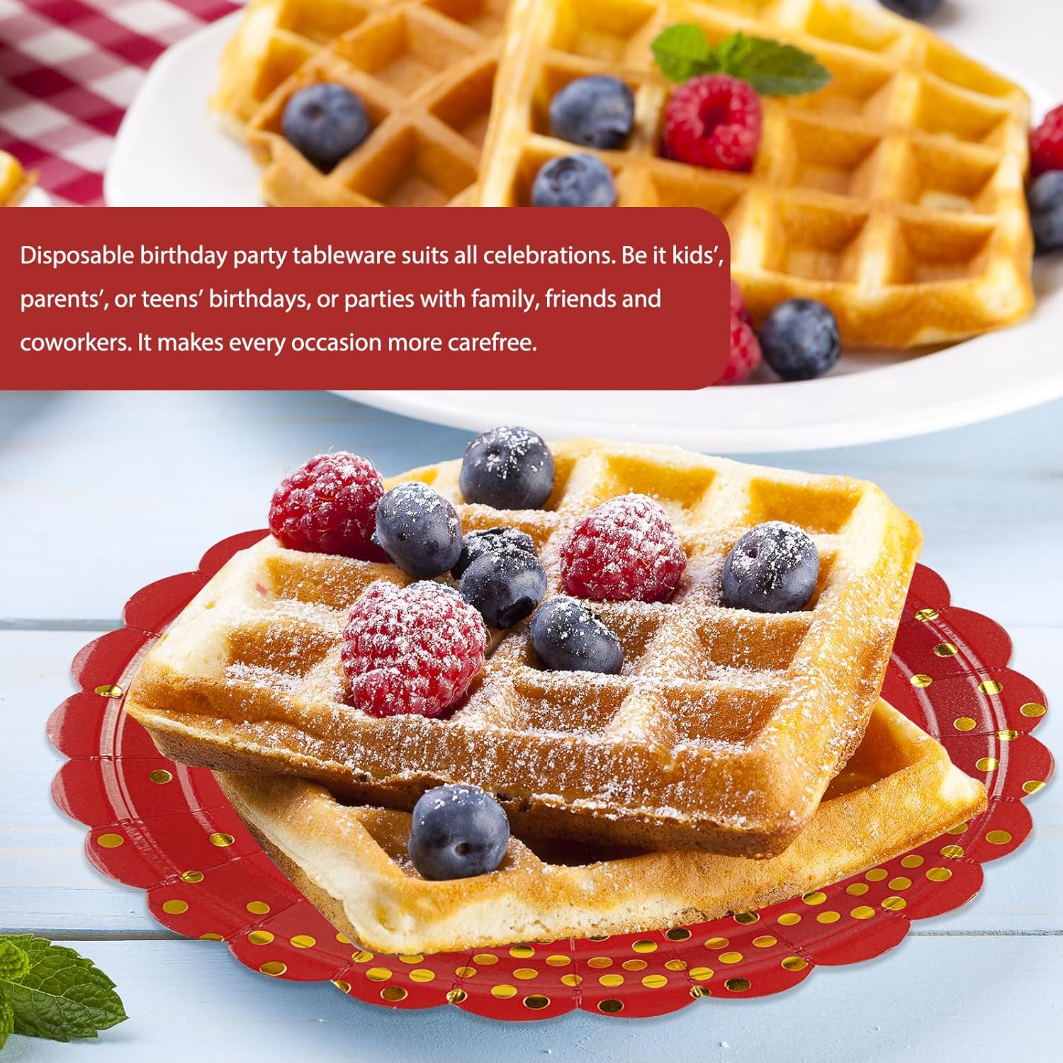 - 【SUPERIOR QUALITY】: Made from thick and food grade 350gsm heavy duty paper, environmentally friendly, odorless, heat resistant, these disposable red plates are strong enough to hold a variety of snacks, salads, and desserts without sagging or tearing. The surface is made of a waterproof membrane, so that your red cake plates can be used with more peace of mind.