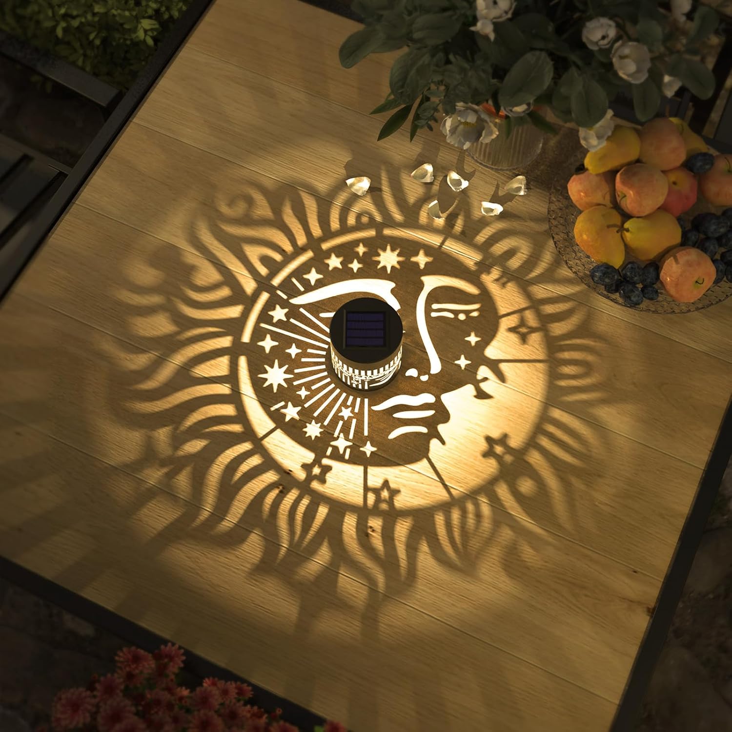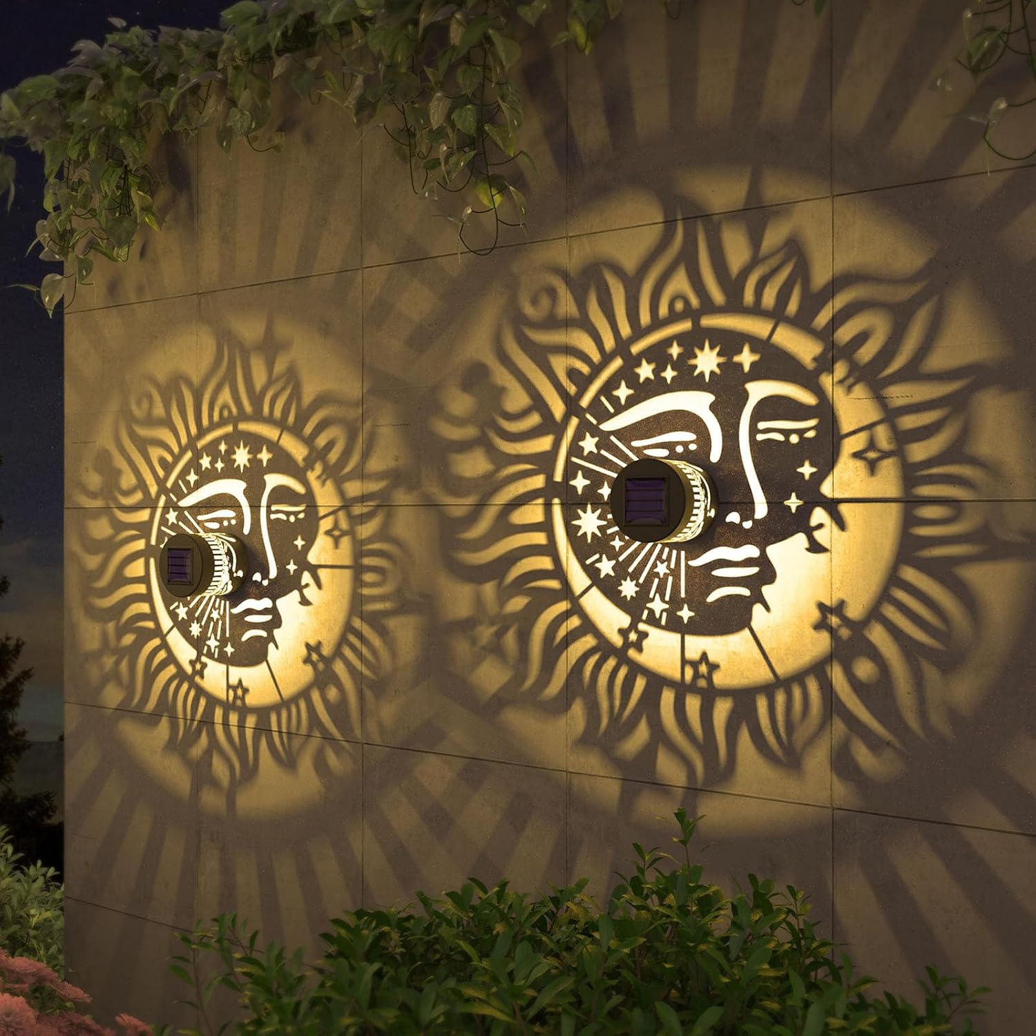 - Good Decoration: 10 lumens of warm yellow light. The small fence solar lights can project a unique and beautiful sun and moon face pattern. In a dim environment, the solar lights can illuminate a corner of the fence or the wall and create a beautiful and warm atmosphere. They are very suitable as holiday decorations and gifts for relatives and friends.