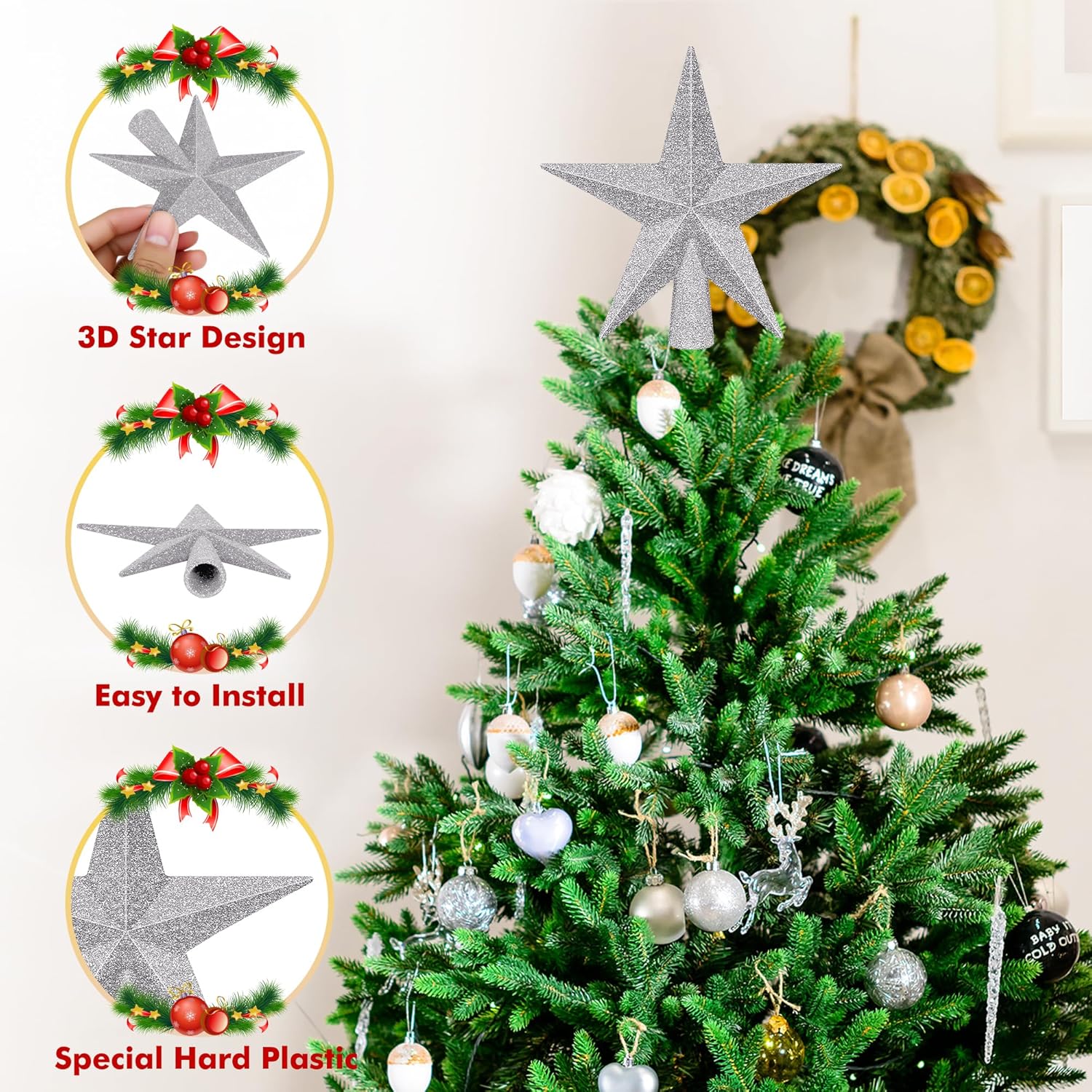 1PCS Tree Topper, 4" Star Christmas Tree Topper Glitter Sliver, Mini Bethlehem Star Xmas Shatterproof Tree Topper Decorations, Waterproof Christmas Decor for Holiday Home Indoor & Outdoor Ornament