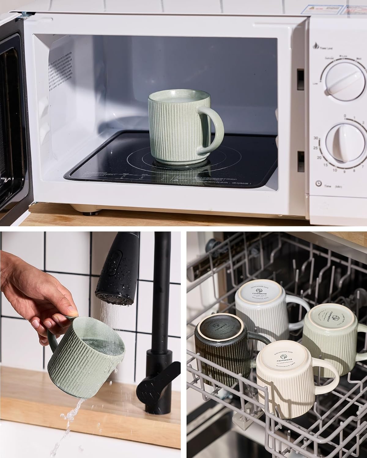 - DISHWASHER AND MICROWAVE SAFE: Famiware coffee cups are made of quality stoneware and have been tested for safety in both environments by internationally accredited laboratories