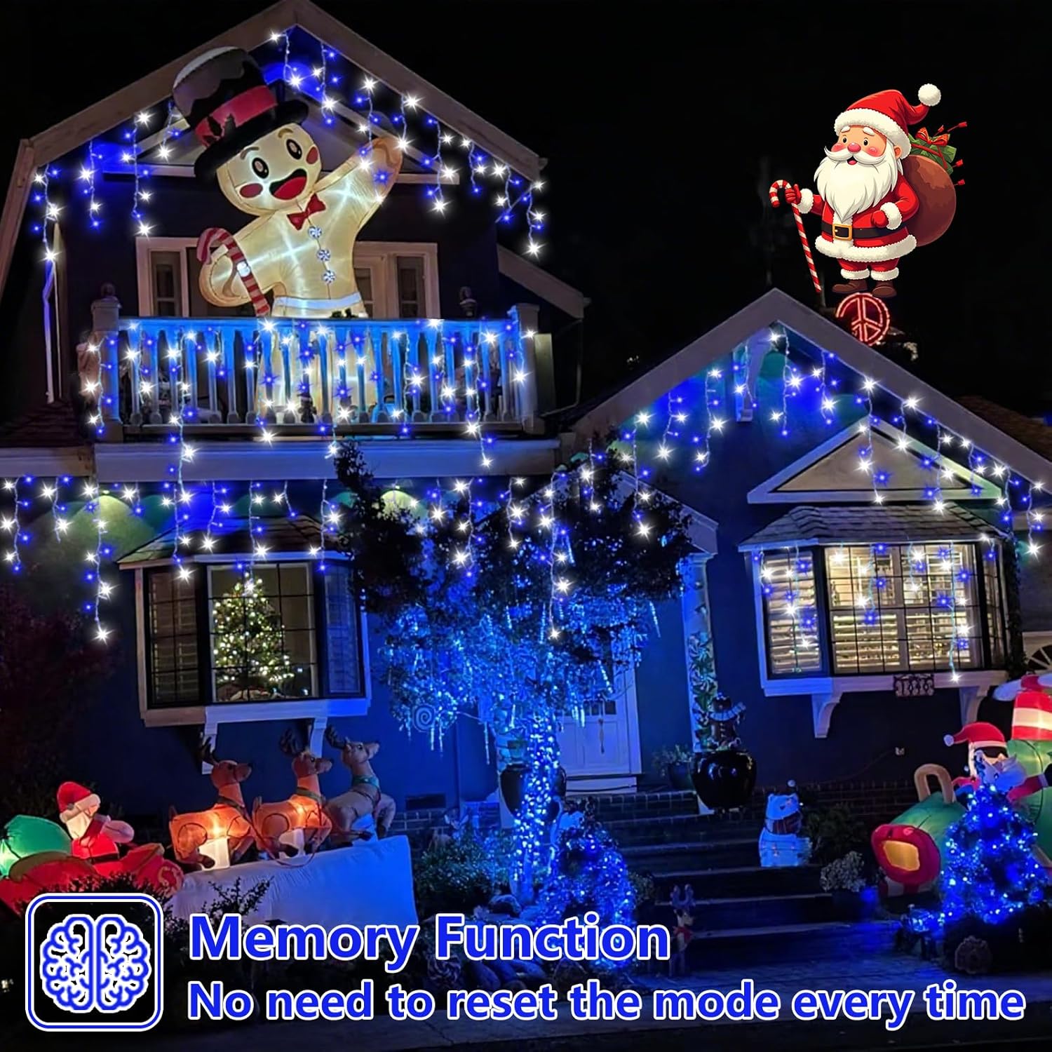 800 LED Icicle Lights Blue and White