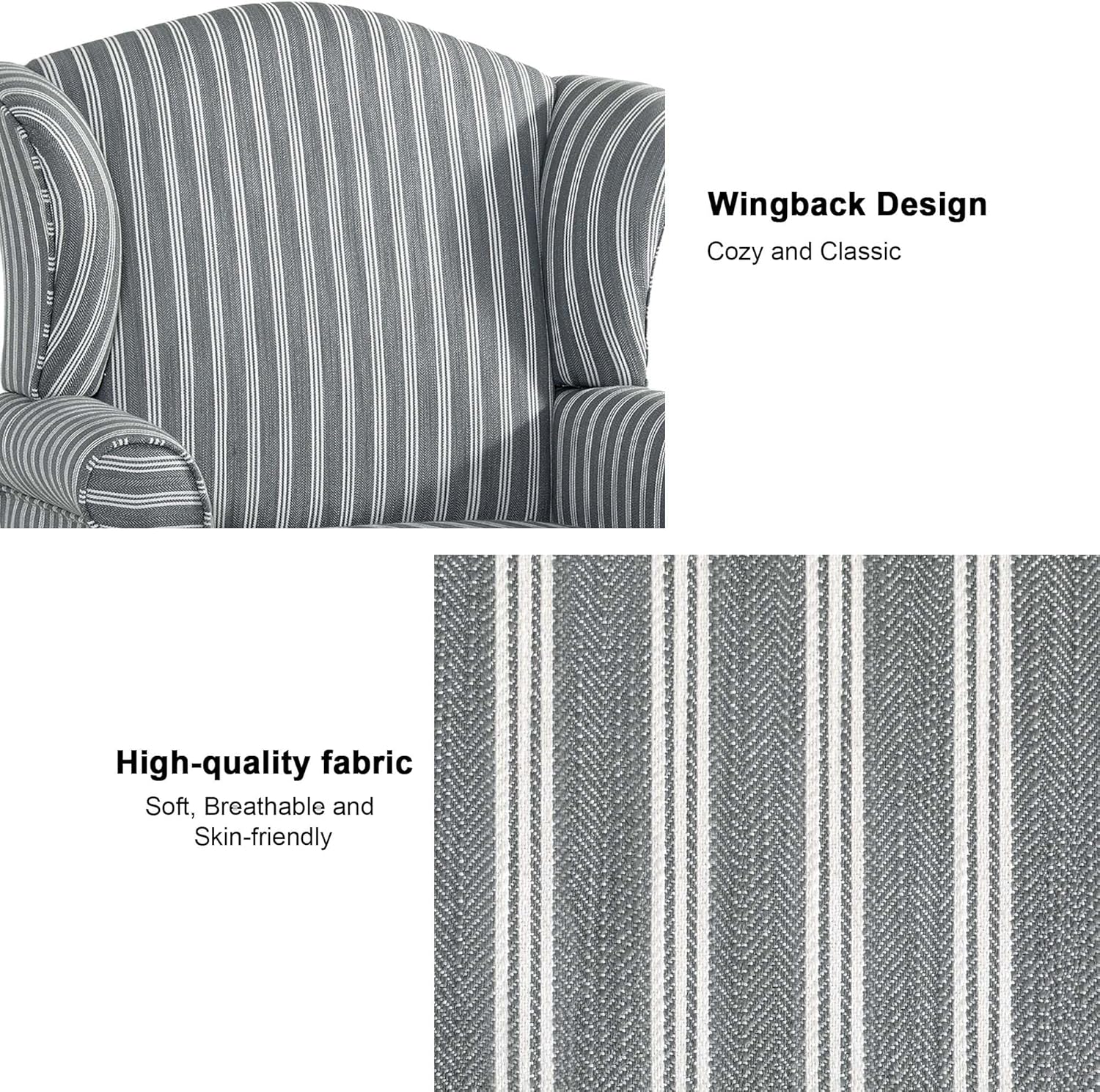 Accent Chair, High Back Upholstered Armchair with High Resilience Sponge & Wood Legs, Mid-Century Modern Comfy Single Sofa Reading Chairs for Living Room, Bedroom (Stripe Grey, Set of 1)