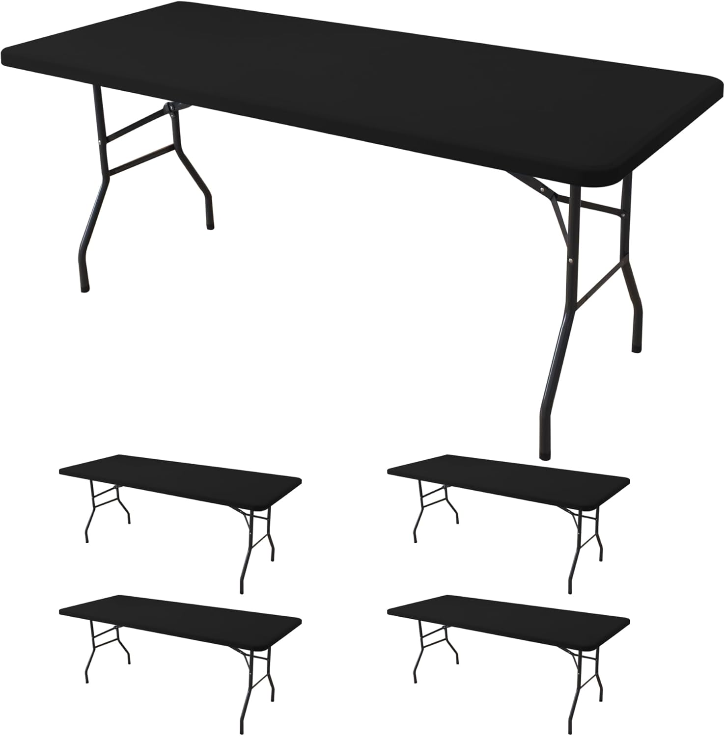 Fitted Tablecloth for 6 Foot Rectangle Tables-4 Pack Black Elastic Outdoor Picnic Table Cover-Spandex Stretch Folding Table Cloths 6 ft for Camping Dining Room Patio Kitchen Banquet Party