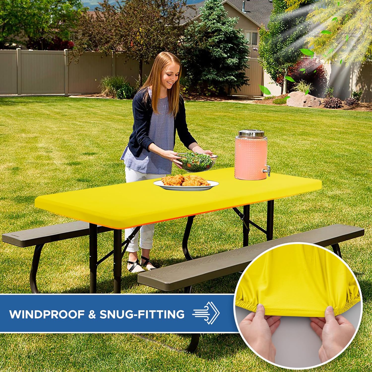 Fitted Tablecloth for 6 Foot Rectangle Tables-4 Pack Yellow Elastic Outdoor Picnic Table Cover-Spandex Stretch Folding Table Cloths 6 ft for Camping Dining Room Patio Kitchen Banquet Party