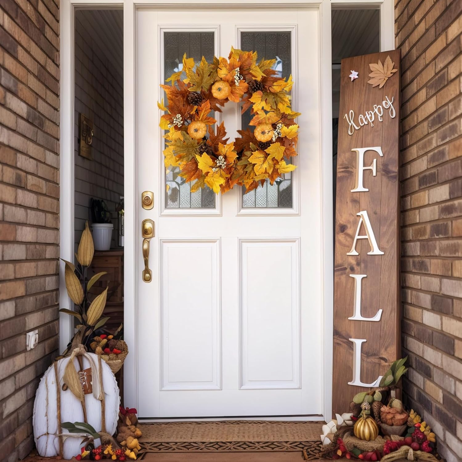 - 【Fall Decorations for Home】With autumn comes Halloween and Thanksgiving-occasions to enhance your home décor. This artificial autumn wreaths for front door adds a festive touch to any space.Suitable for decorating the front door,living room,windows,fireplace,mirrors,kitchen,dining room,front porch,stair railings,weddings,offices,store displays,hotels,indoor and outdoor spaces,farmhouse settings,and more