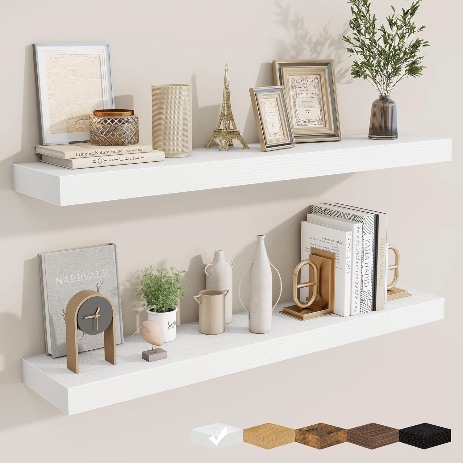 fuqing Floating Shelves for Wall, Bathroom Shelf Wall Mounted for Storage, Shelves with Invisible Bracket for Bedroom, Kitchen, Living Room, Farmhouse Small Book Shelf, 40 Inch Set of 2, White