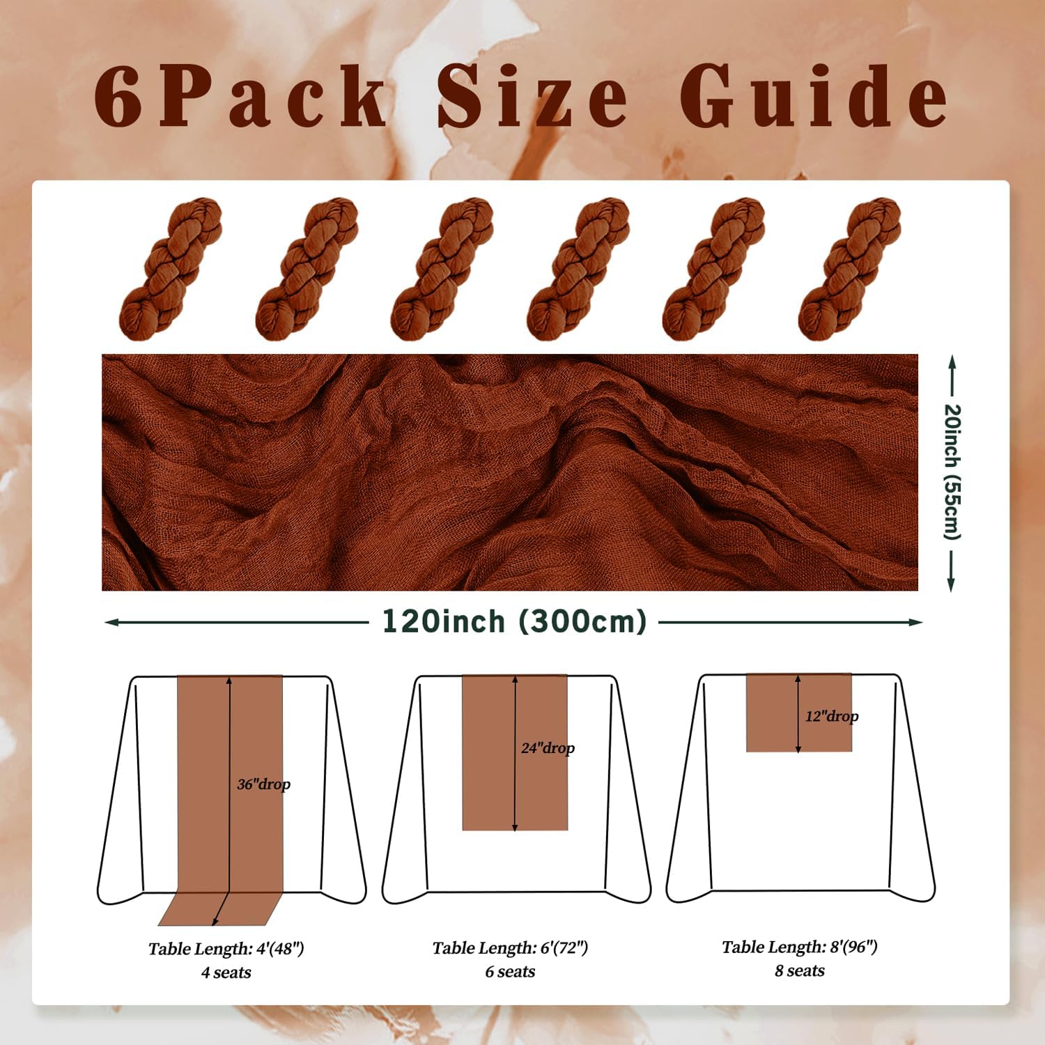 6 Pack Terracotta Cheesecloth Table Runner 10FT Boho Rustic Cheese Cloth Table Runner for Wedding 20 x 120 Inch Long Bridal Shower Baby Shower Gauze Fabric Sheer Birthday Party Table Decorations