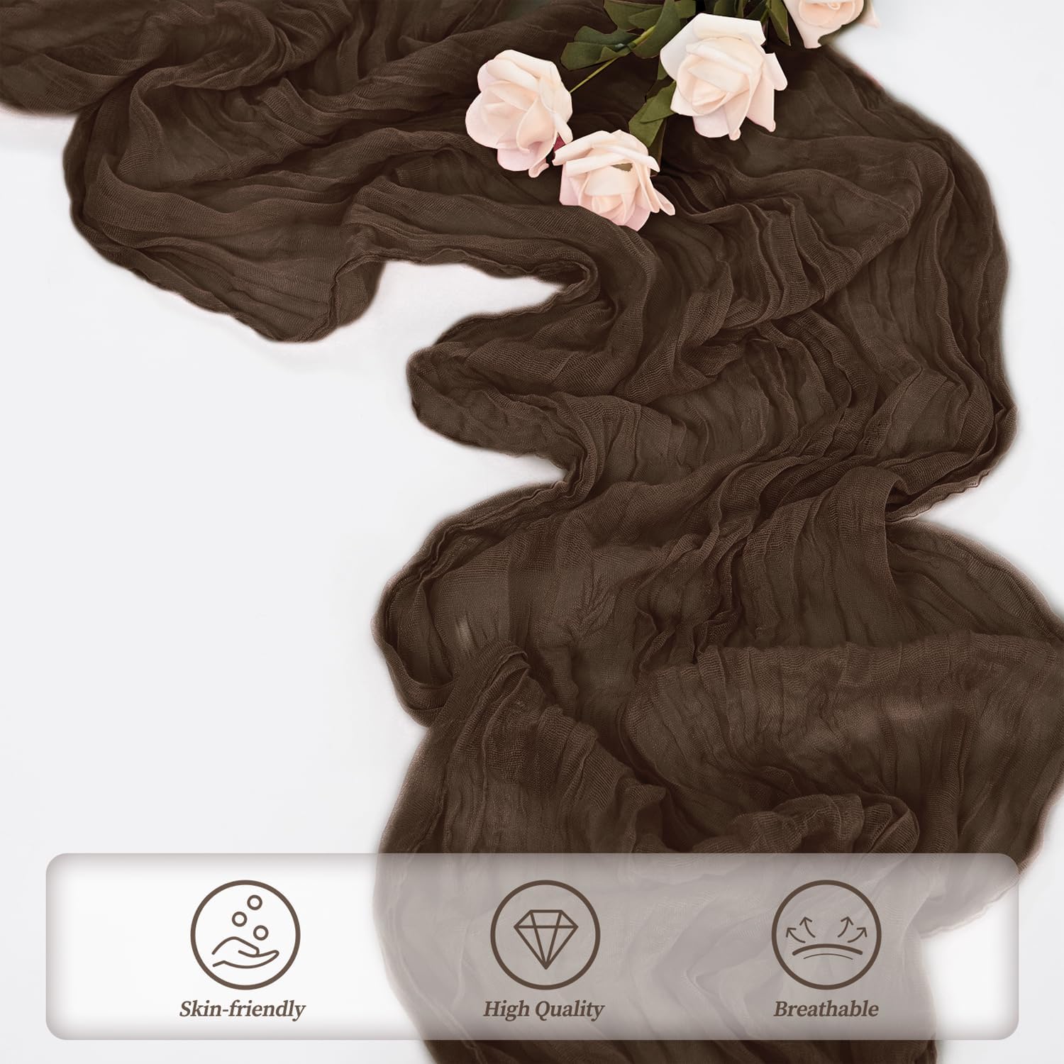 6FT 20 Pack Brown Cheesecloth Table Runner 20 x 120 Inch Long Boho Fabric Rustic Cheese Cloth Table Runner for Wedding Bridal Shower Baby Shower Gauze Sheer Birthday Party Table Decorations