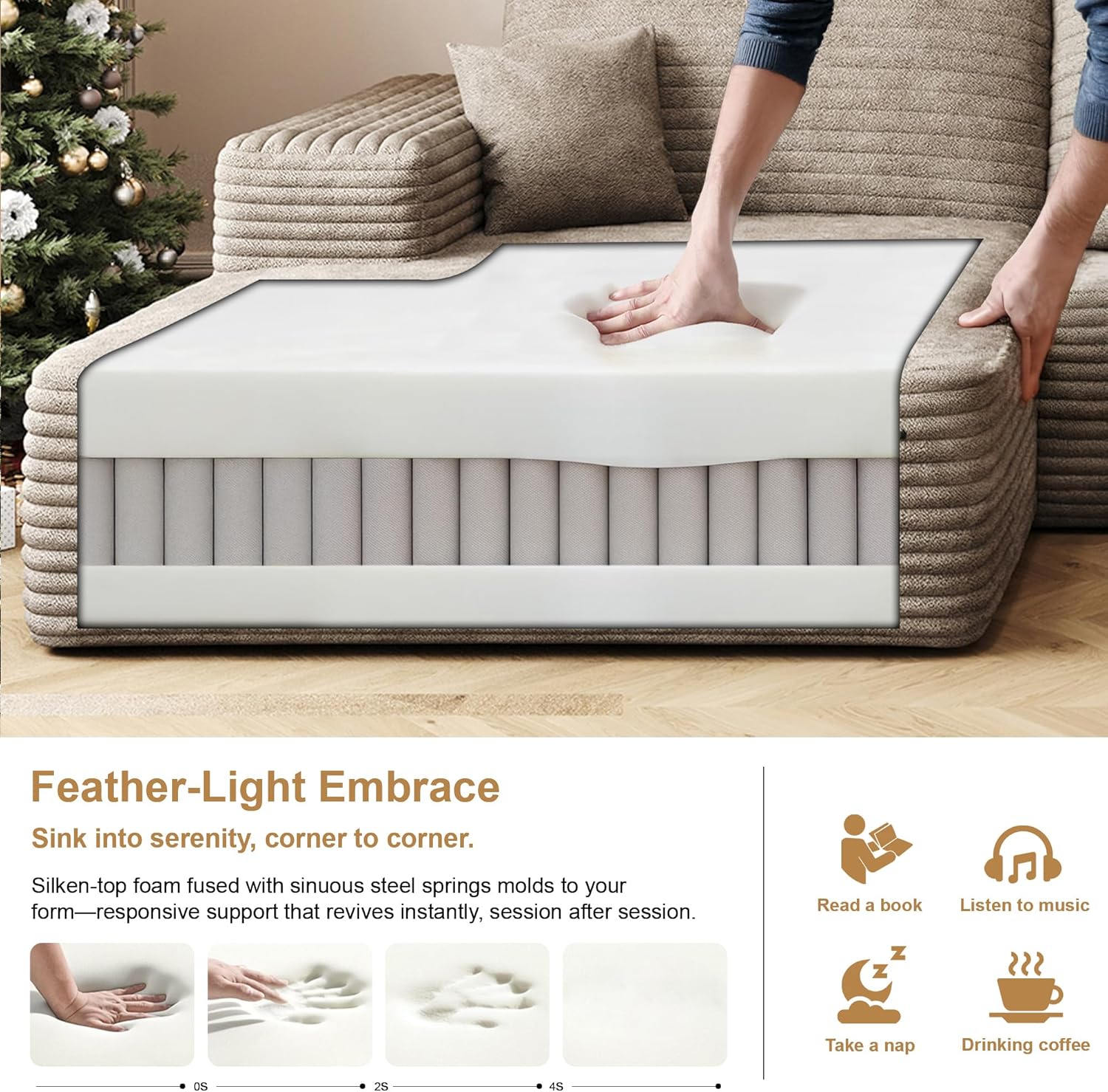 136" Sectional Couches for Living Room Modern Modular Sofa with L-Shape Couchs Upholstered Boneless Couch Deep Seat Sectional Couch with Chaise (Camel, Left Facing Chaise+3Seaters+Ottoman)