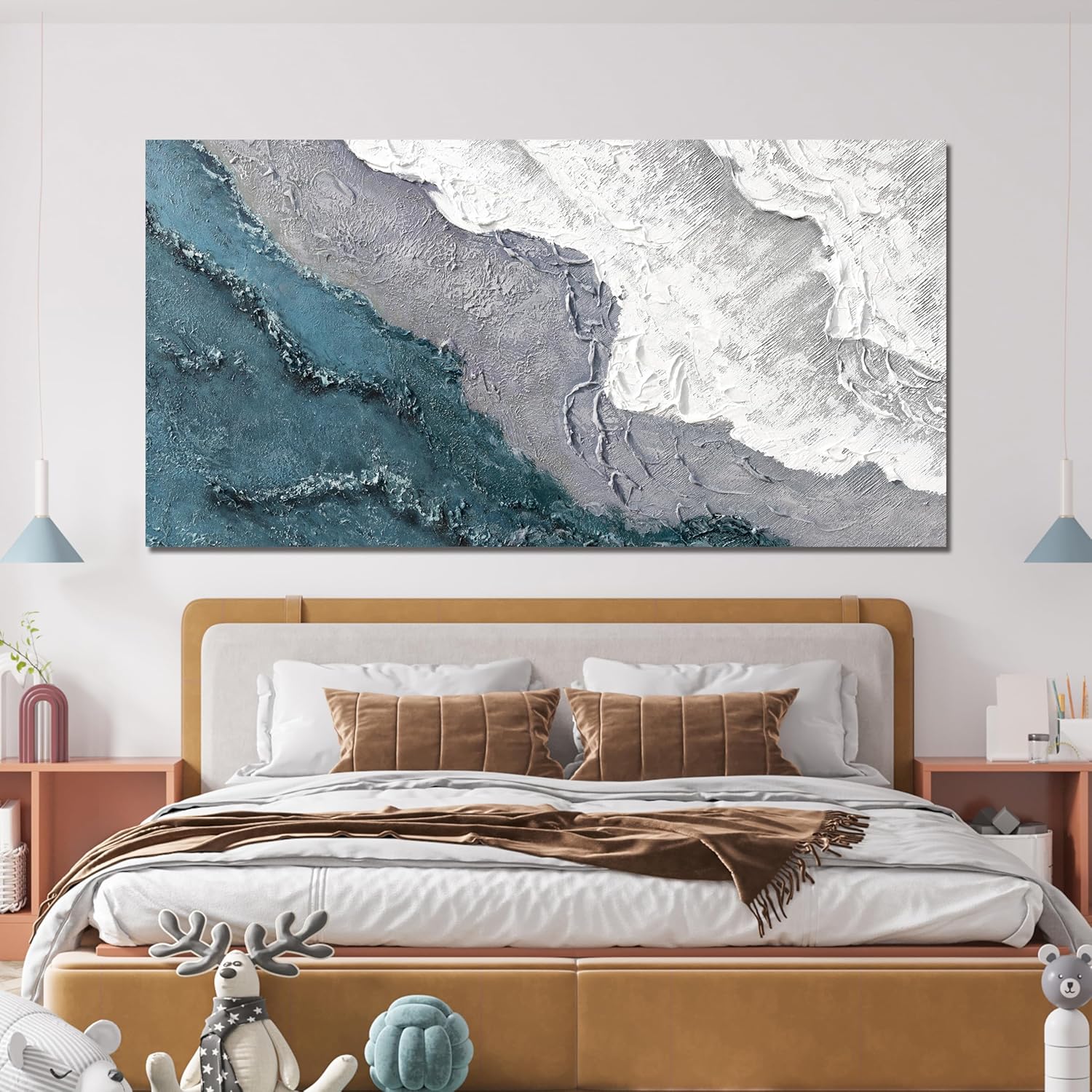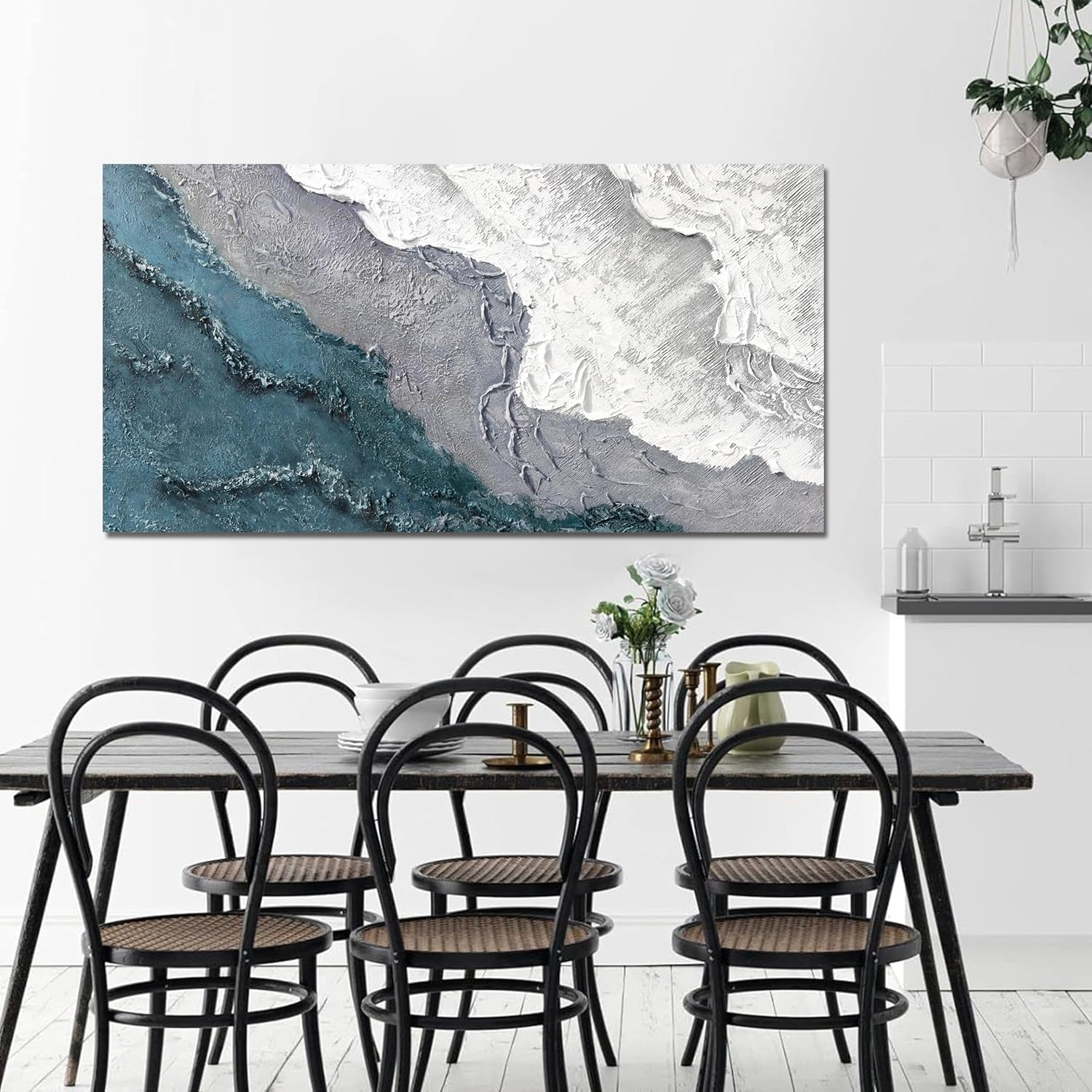 Abstract Wall Art Decor Modern Blue White Wall Art Prints Abstract Canvas Art Wall Decor Coastal Minimalist Wall Art Decorations Canvas Wave Artwork for Walls Bedroom Office Wall Art Decor 20" X 40"
