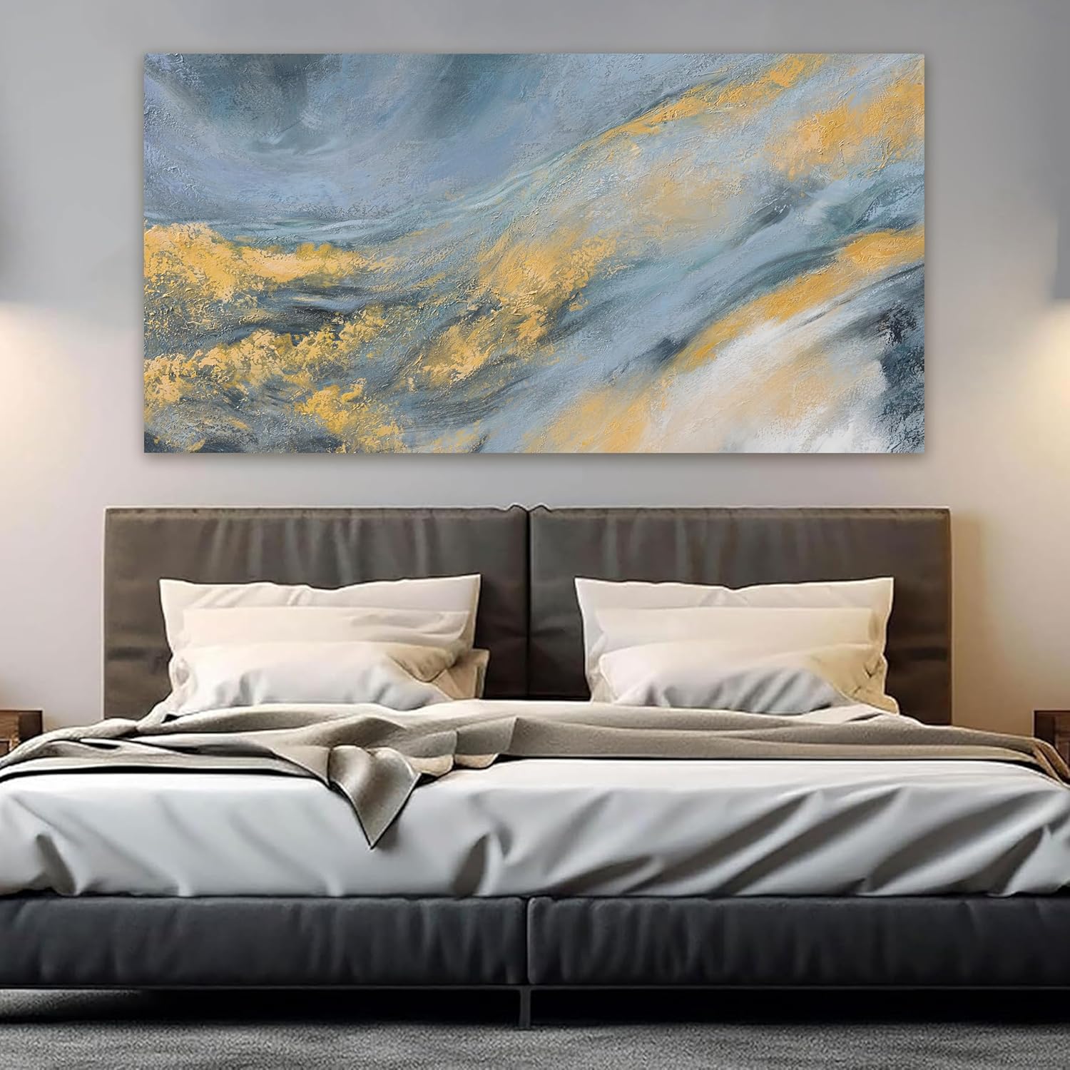 Abstract Wall Art Decor Large Modern Blue Wall Art Prints Canvas Wall Art for Living Room Abstract Canvas Art Wall Decor Gold Wall Art Decorations Artwork for Walls Kitchen Bedroom Decor 24" X 48"