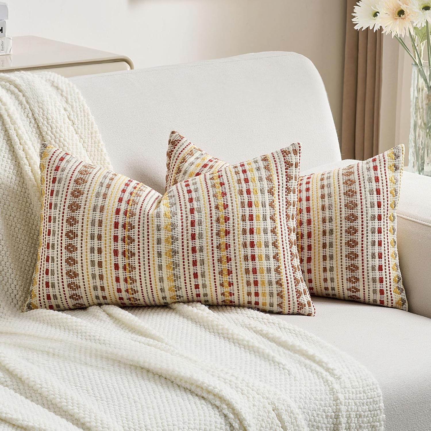 FUTEI Brown Red Decorative Throw Pillow Covers 12x20 Inch Set of 2,Soft Cozy Chenille Jacquard Textured Pillow Case,Boho Home Decor for Couch Bed Living Room