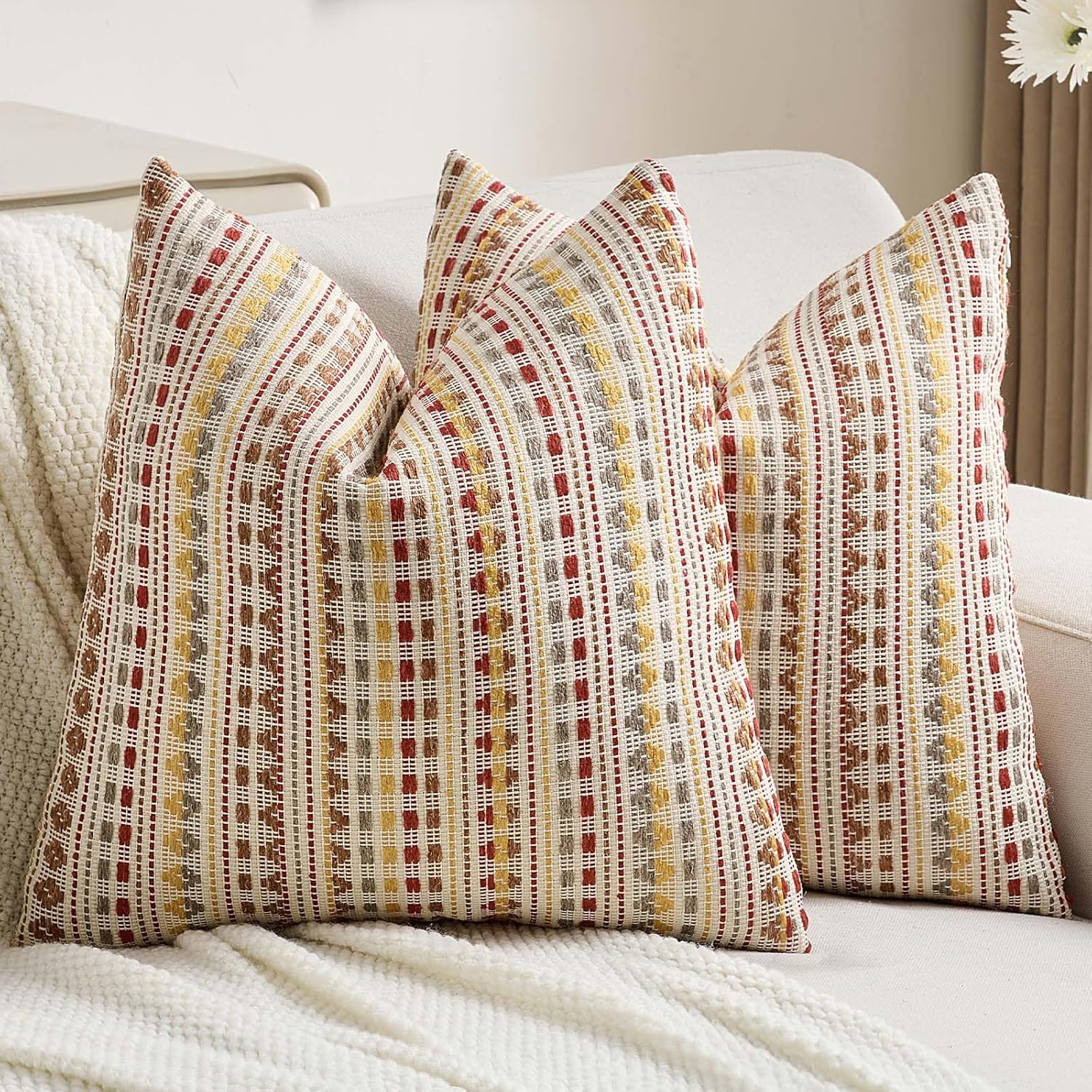 FUTEI Brown Red Decorative Throw Pillow Covers 18x18 Inch Set of 2,Soft Cozy Chenille Jacquard Textured Cushion Case,Boho Home Decor for Couch Bed Living Room