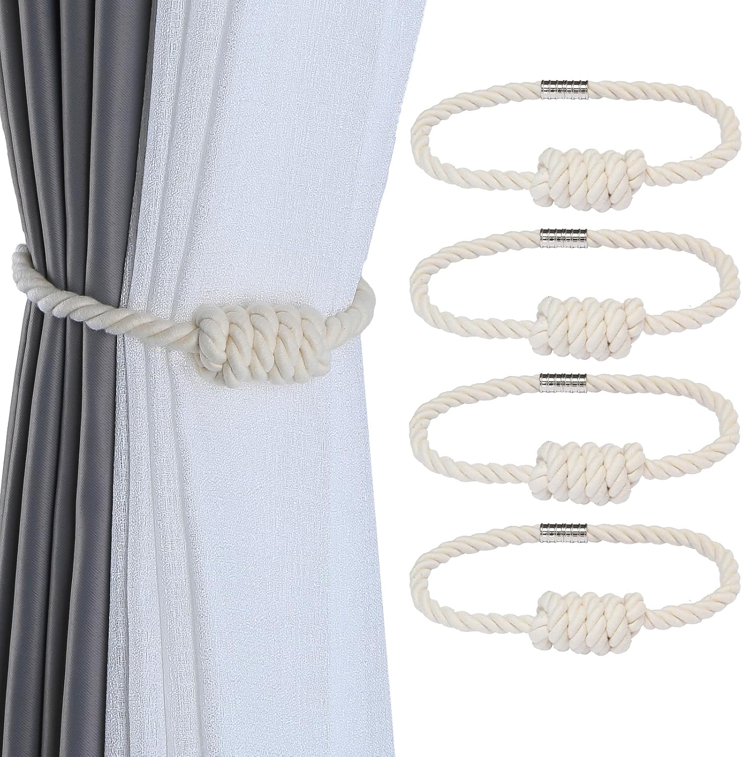 Fenghuangwu 4Pack Magnetic Curtain Tiebacks – Bohemian Style Handmade Woven Tie-Backs for Drapes,Elegant Exquisite Knot Holdbacks,Outdoor Boho & Modern Home Decor-Cotton