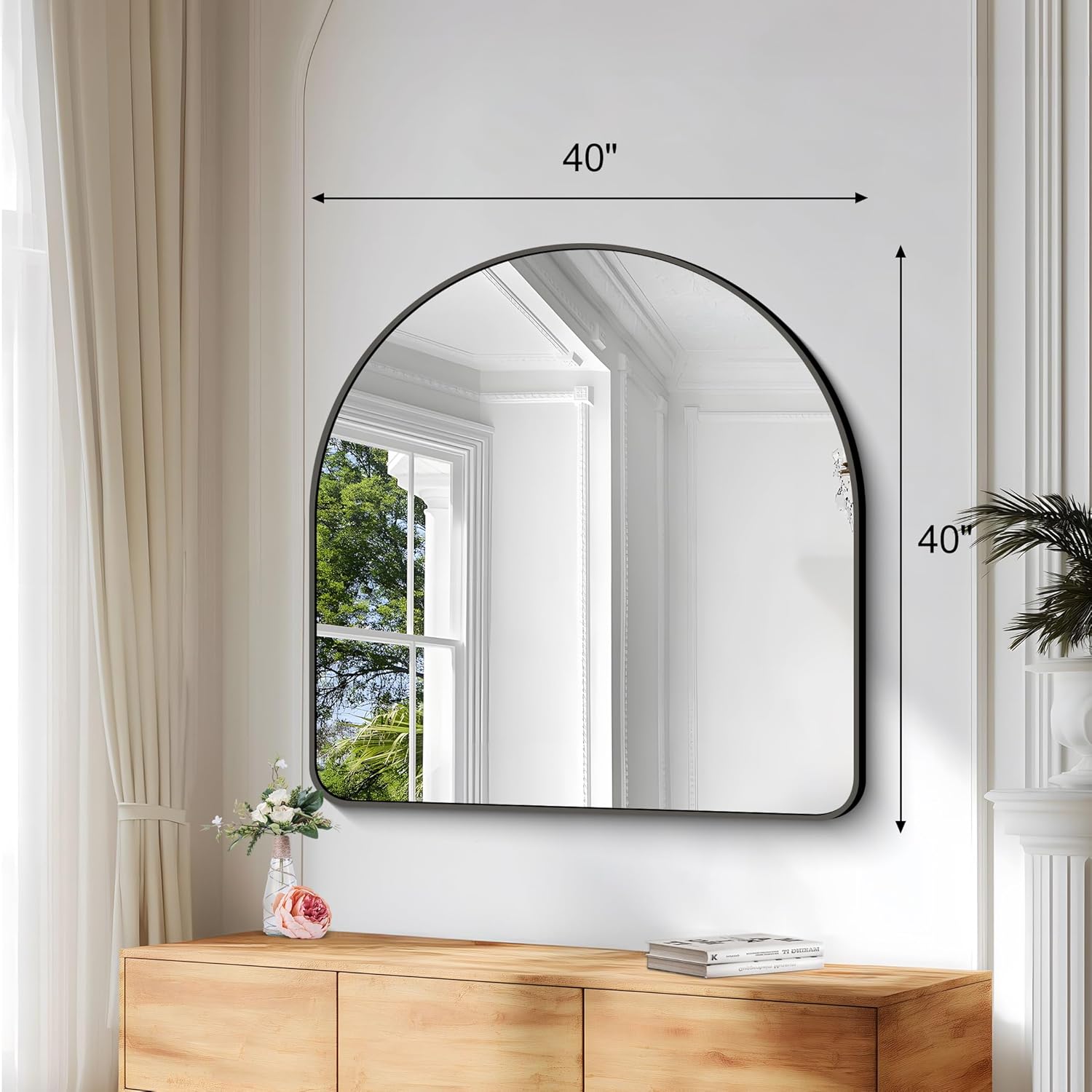 Arched Bathroom Mirror, 40"x40" Black Arched Mirror for Bathroom, Wall Mounted Mirror, Black Vanity Wall Mirror w/Metal Frame for Bedroom, Entryway, Living Room, Hanging or Leaning Against Wall