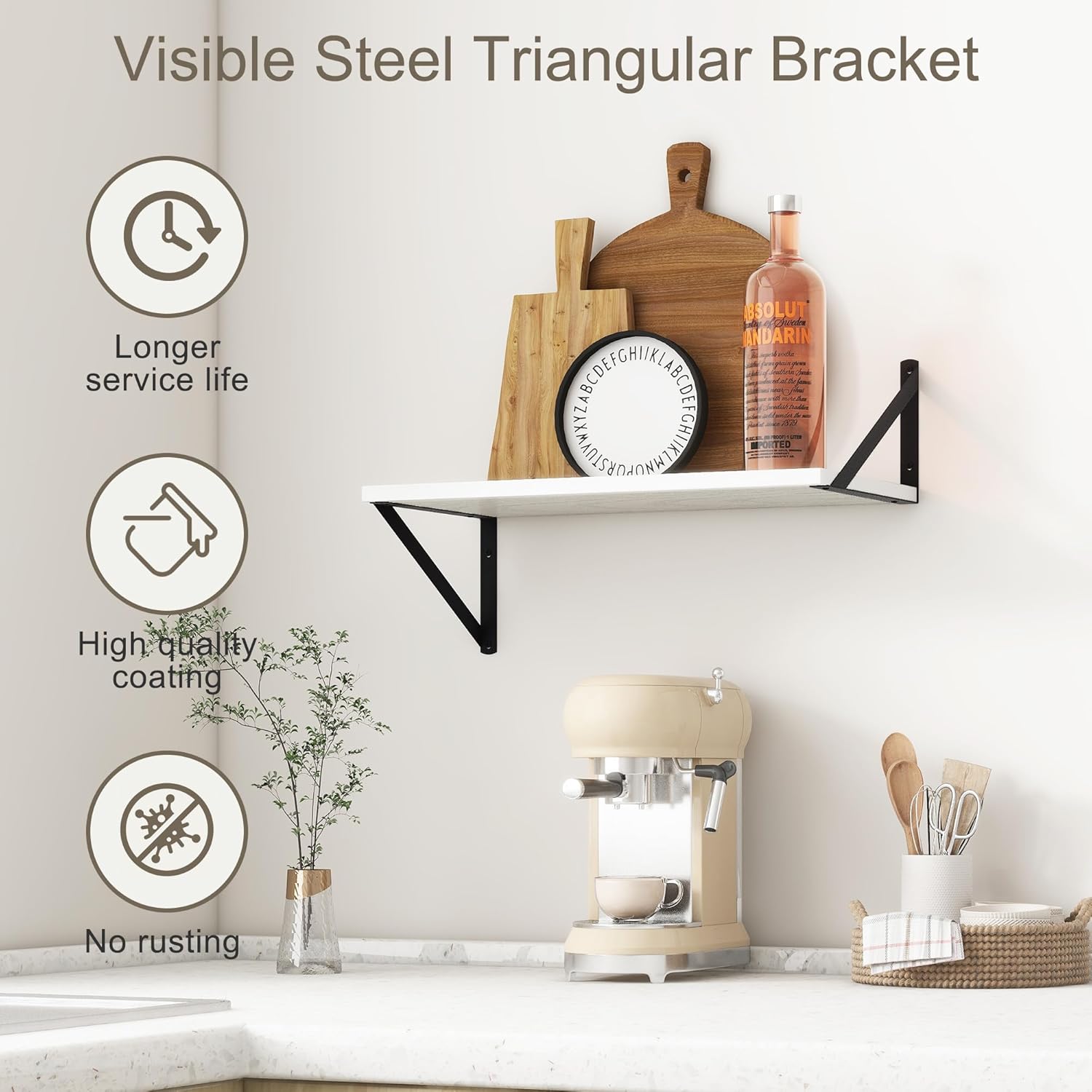 - ăFARMHOUSE RUSTIC WALL SHELFăThese floating shelves are made of premium engineered wood board and visible triangular bracket. The rustic wooden grain surface add character and warmth to any modern or traditional interior with these deep floating shelves, contrast shelves at staggering heights on the wall or mount side-by-side or in the corner for a clean streamlined look.
