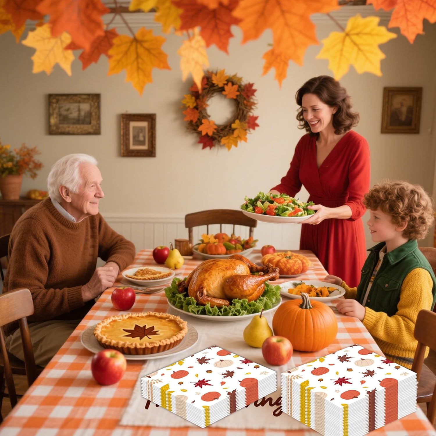 - 🍁Premium Quality Material: Made from high-quality, 3-ply paper, these disposable fall napkins are soft yet durable, ensuring they won’t tear easily. The sturdy material also offers excellent absorbency, making them perfect for both casual and formal occasions.