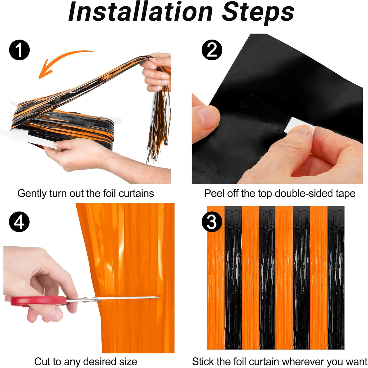 - Easy to Install: This Halloween tinsel have adhesive paper on the top, just peel the paper off and stick it where you need it, then cut it to the size you need.