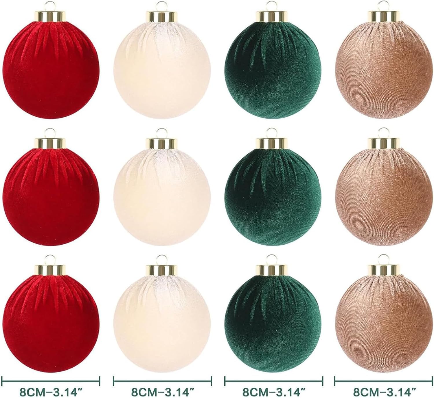 - ☀️CHRISTMAS ORNAMENT SET: The Christmas ornament set features 12 large velvet Christmas ornament balls, made of high-quality materials and with exquisite surface treatment. It has a classic and elegant design, making it perfect for decorating Christmas trees of various sizes and creating a warm and unique Christmas atmosphere for your home.
