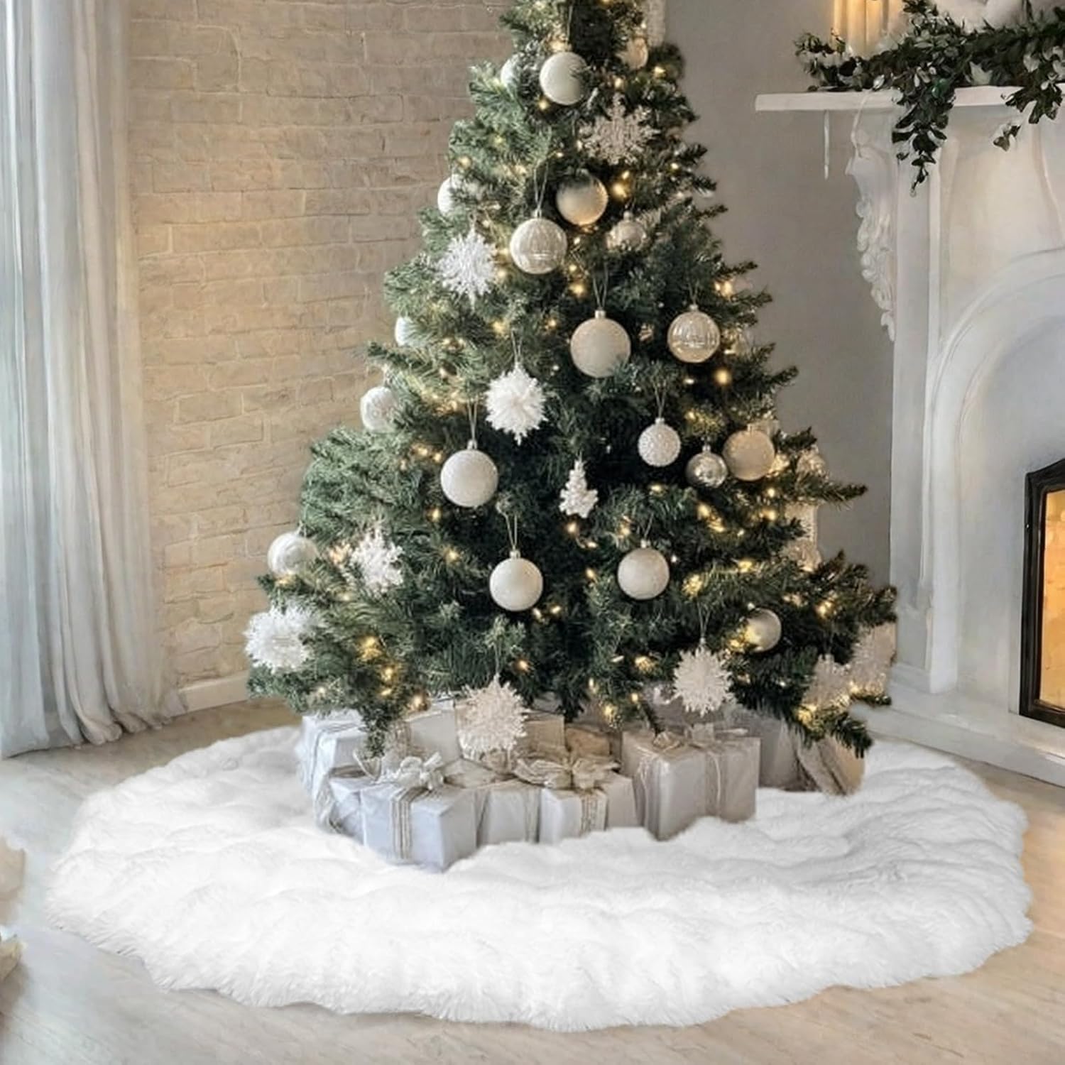 48 Inch Rabbit Fur Christmas Tree Skirt White Plush Skirt for Merry Christmas Party Christmas Tree Decoration
