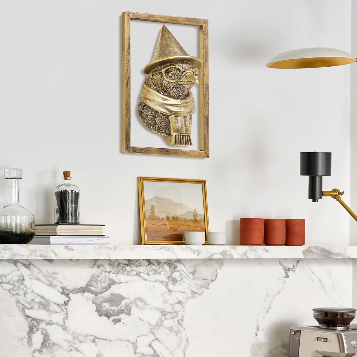 Animal Heads Wall Decor (Includes Metal Frame) Resin Animals Sculptures Head Wall Hanging Decoration Gold vintage Wall Sculpture for Living Room Bedroom Office (Penguin)