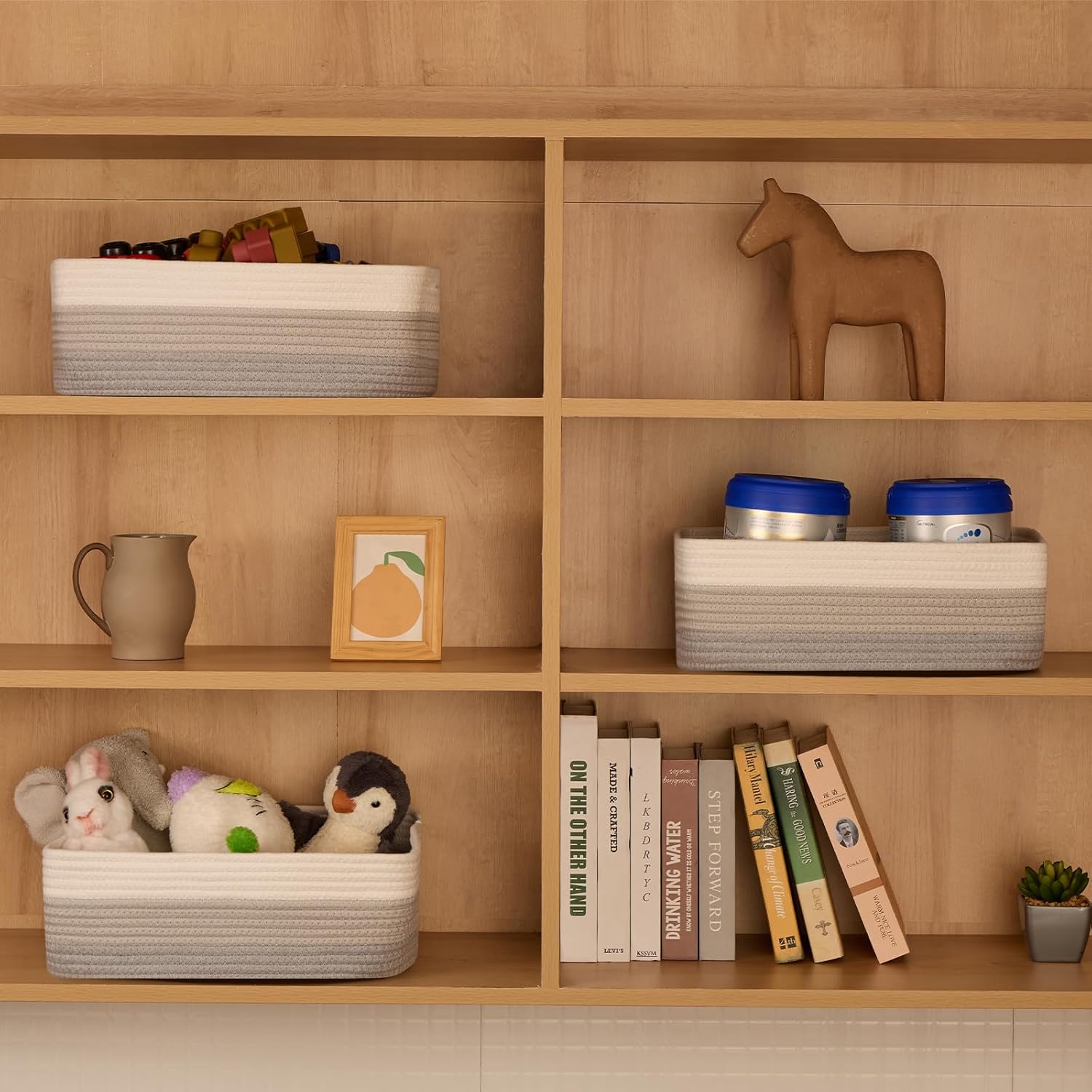 - [ Stylish & Versatile ]: Great for organizing small items on desks, in closets, wardrobes, or dressers—these cute baskets add texture to any living room, bedroom, or bathroom, appealing to fans of modern minimalist design