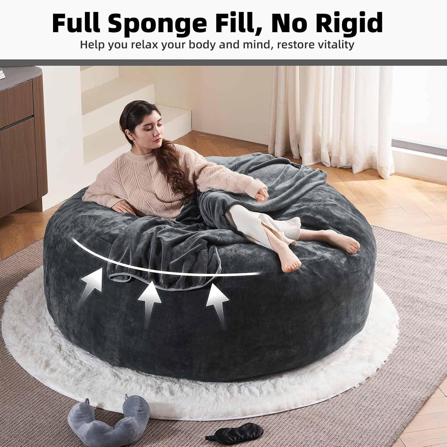 6FT,Oversized Bean Bag Chairs for Adults,Giant beanbag with Filler Included,Fluffy Memory Foam,Soft and Comfy Corduroy Fabric,Gaming Chairs Suitable for Living Room and Bedroom (Dark Gray, 6 Foot)